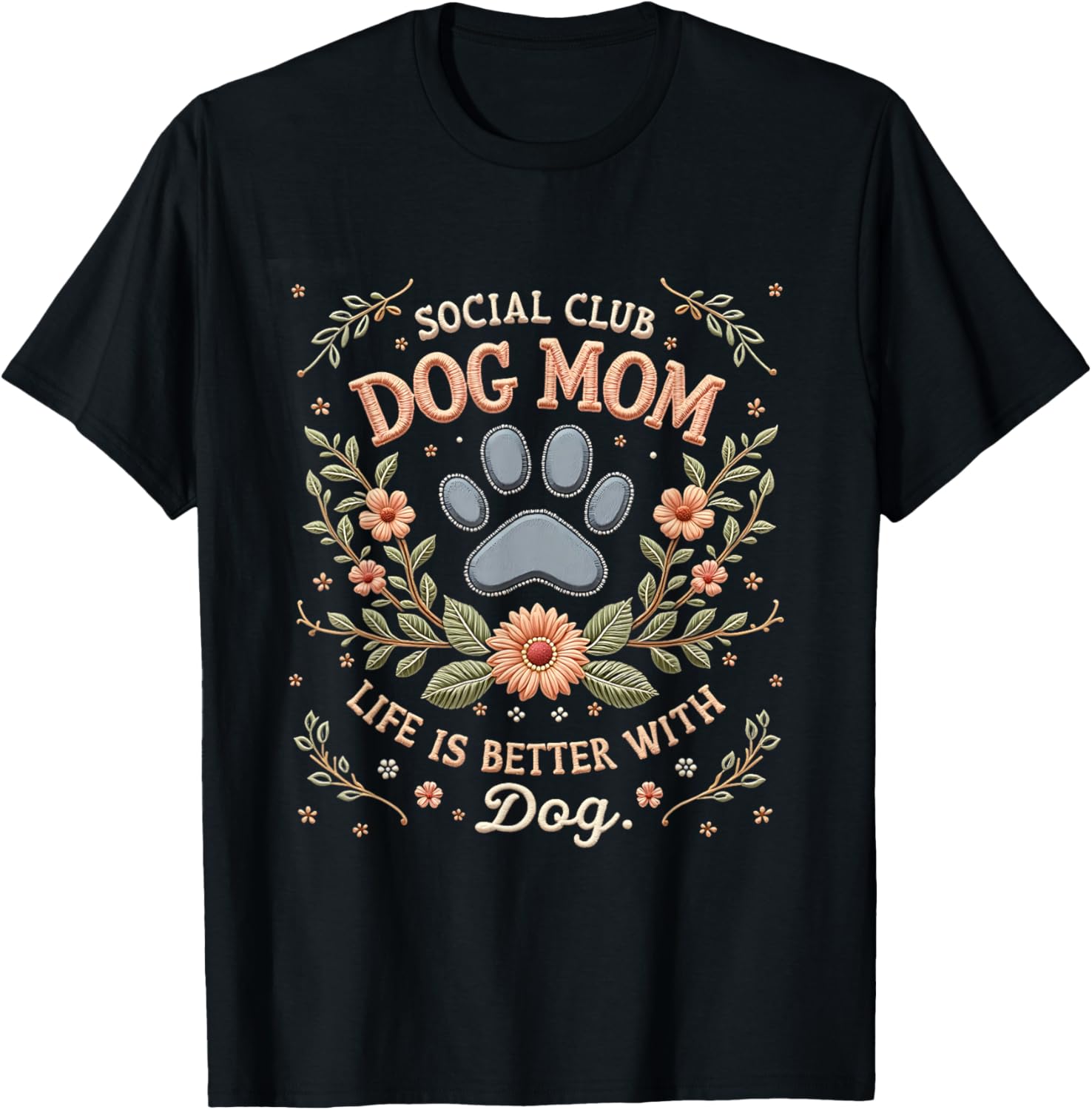 Funny Dog Mom Social Club Floral Paw Dog Lovers Graphic T-Shirt