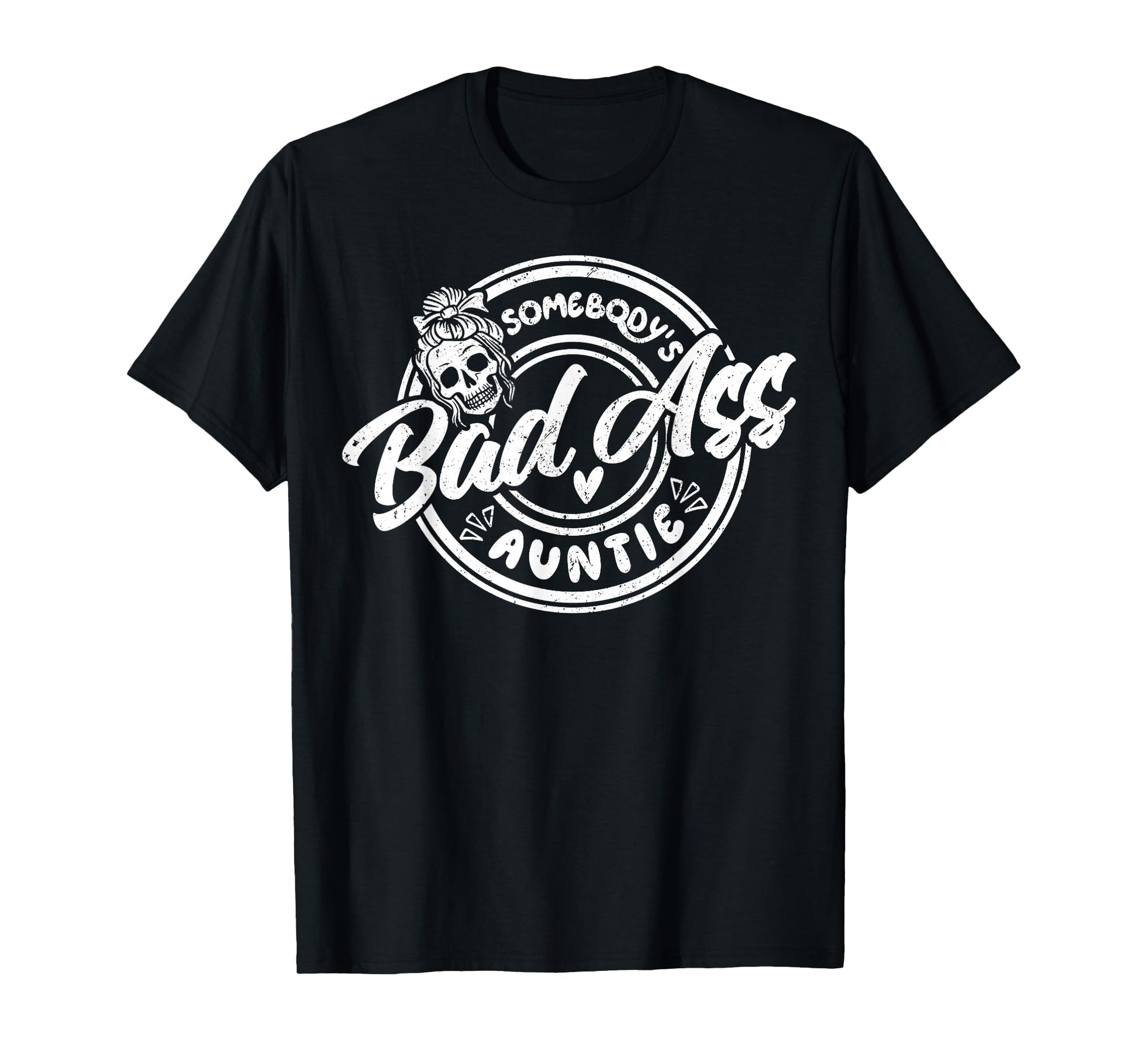 Somebody’s Badass Auntie Funny Aunt Messy Bun Skeleton Women T-Shirt