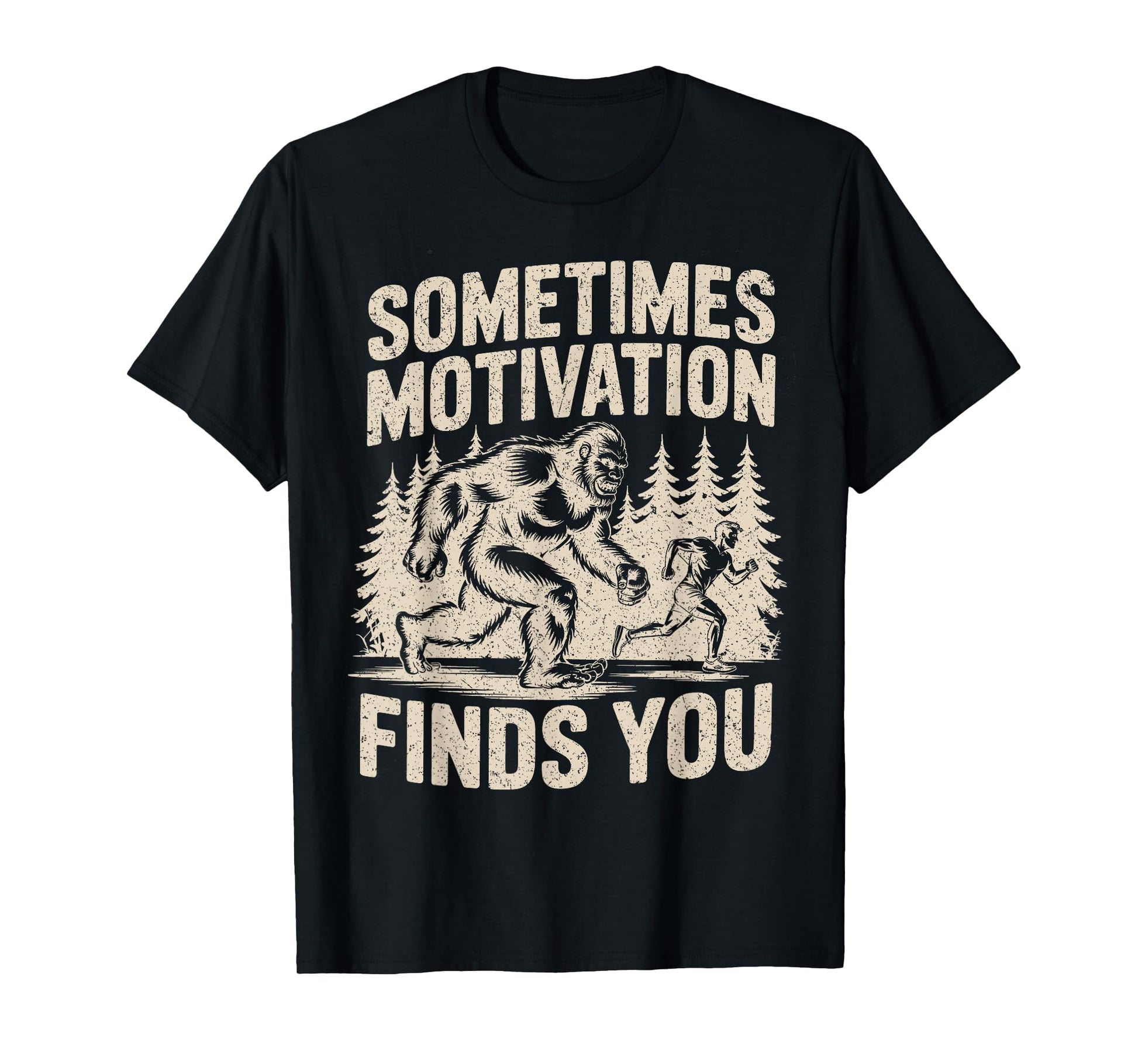 Sometimes Motivation Finds You Funny Bigfoot Running Vintage T-Shirt