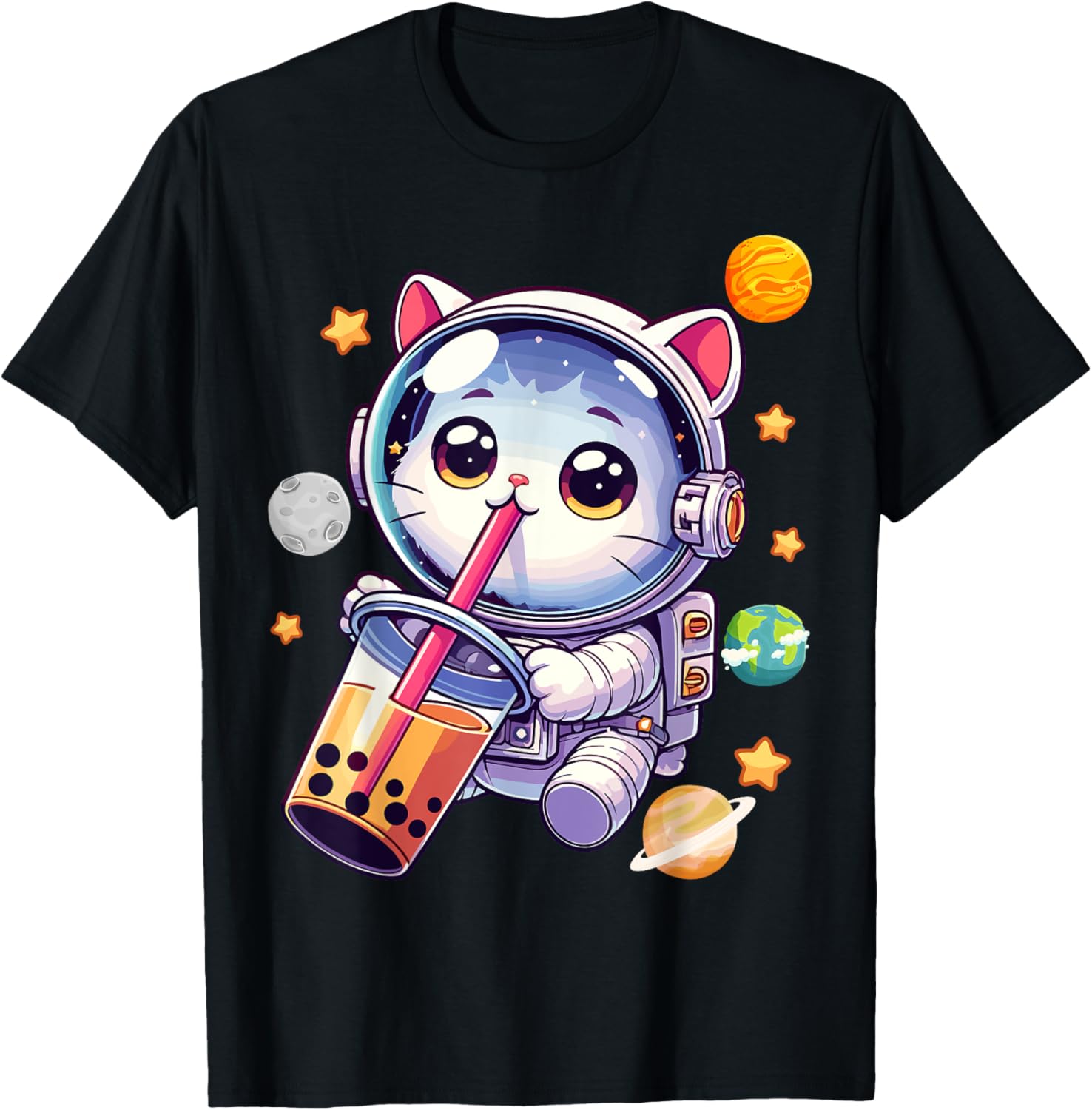 Space Cat Astronaut Boba Tea Boba Cat Galaxy Cute Anime T-Shirt
