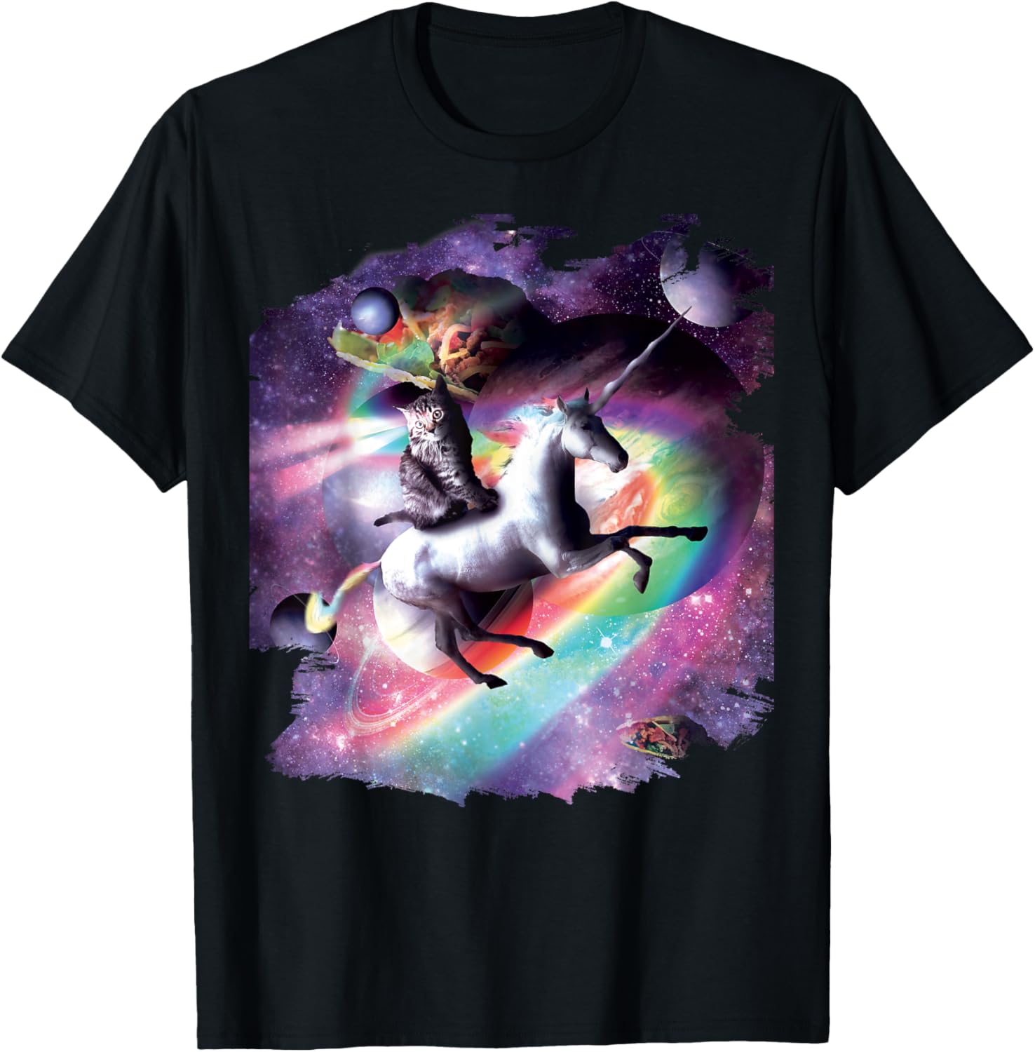 Space Cat Riding Unicorn - Laser, Tacos And Rainbow T-Shirt
