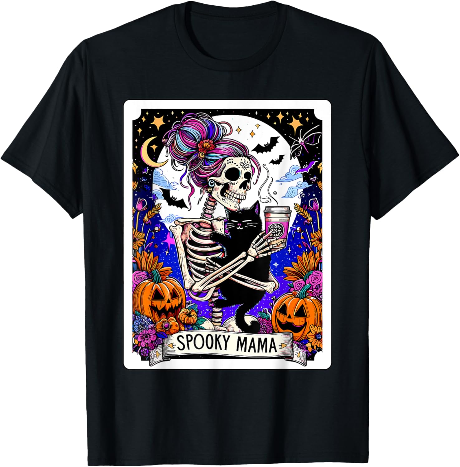 Spooky Mama Tarot Card Halloween Mom Skull Mama Black Cat T-Shirt