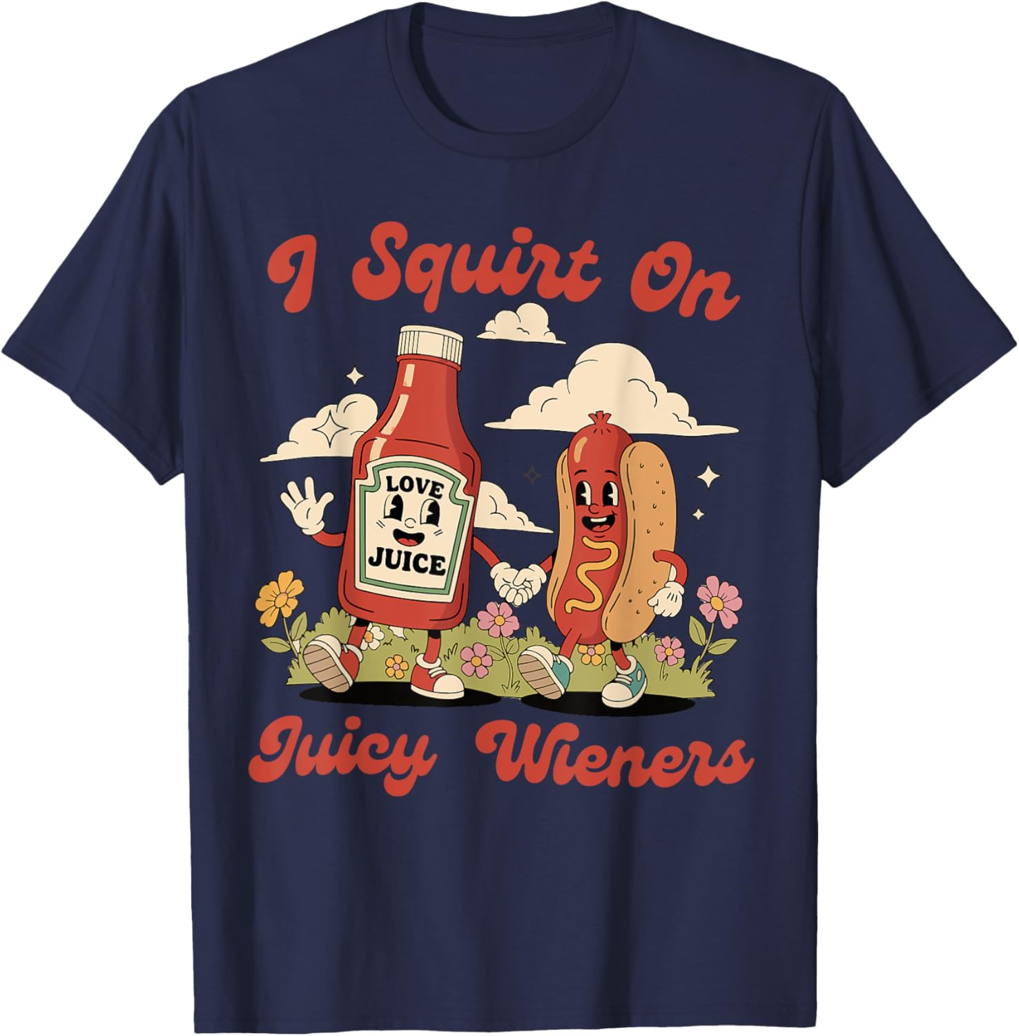 I Squirt On Juicy Wieners, Funny Juicy Wieners Meme Hot dog T-Shirt