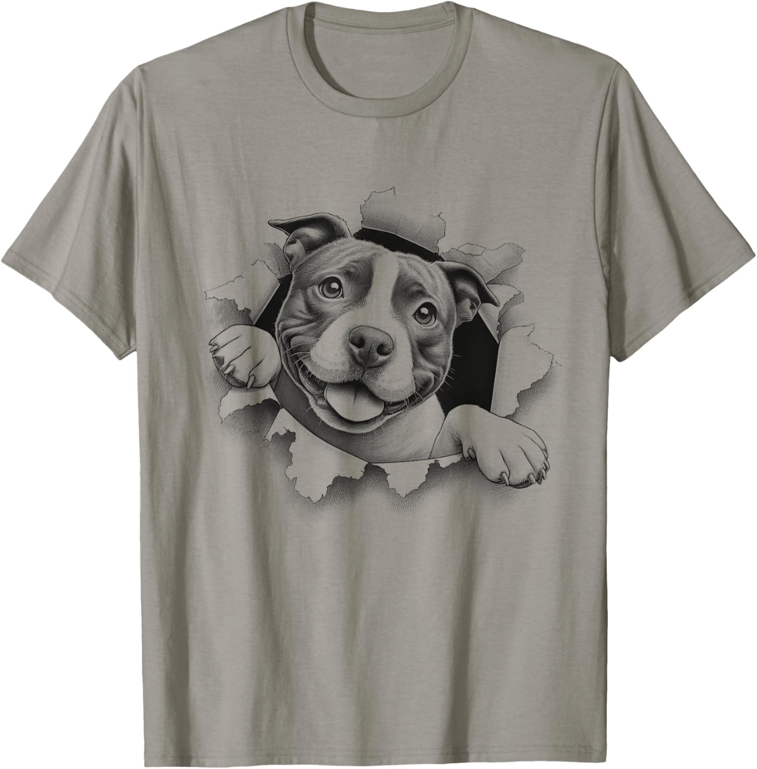 Funny Staffordshire Bull Terrier Peeking Staffy Dog Design T-Shirt