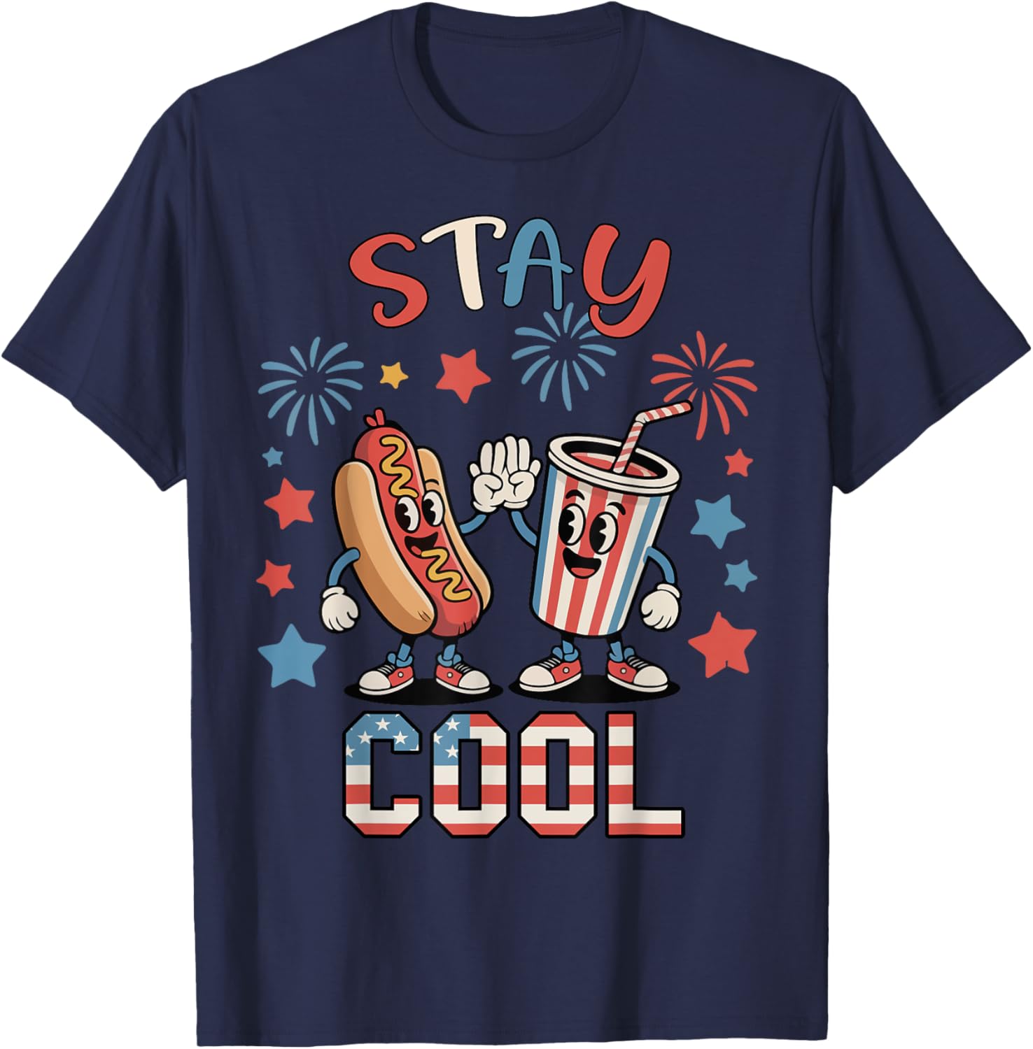 Stay Cool Hotdog 4th July Kids Boy Toddler Patriotic Funny T-Shirt