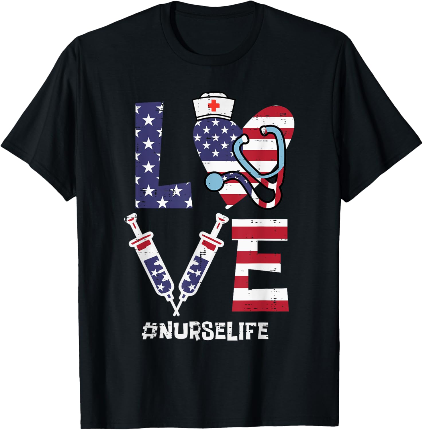 Love Stethoscope Nurse Fourth 4th Of July Nursing Patriot T-Shirt