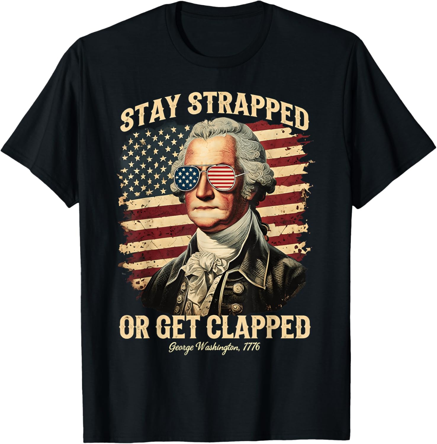 Stay Strapped Or Get Clapped George Washington 4th Of July T-Shirt