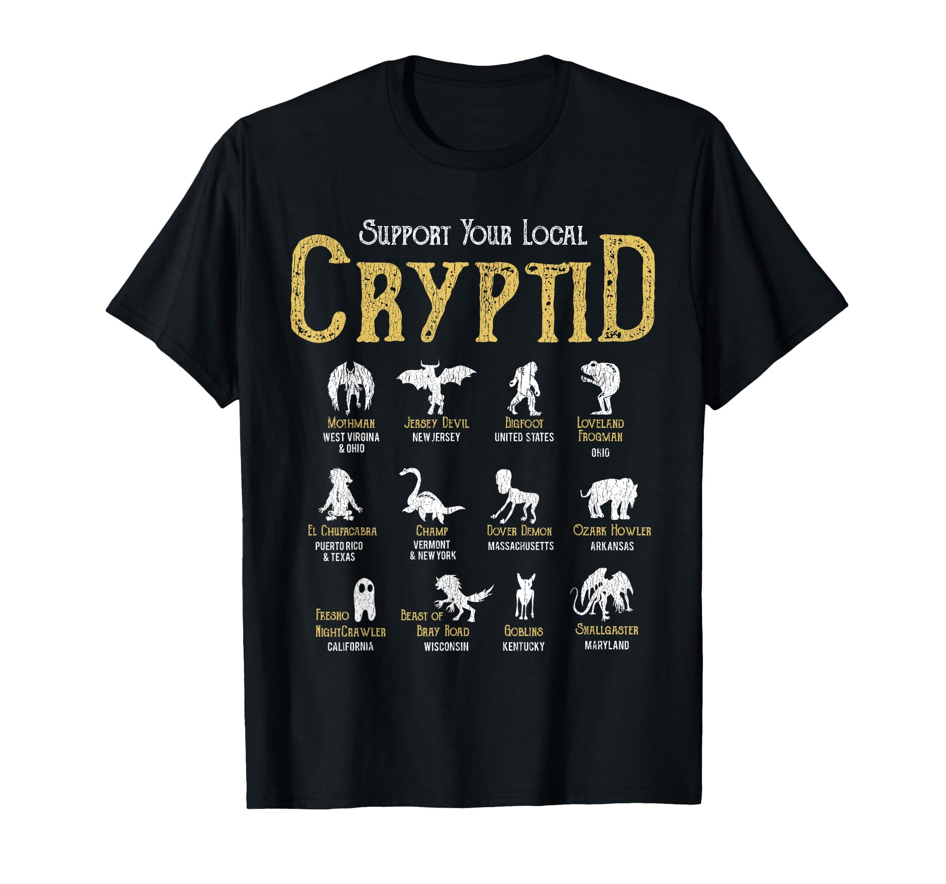 Support Your Local Cryptid Vintage Funny Cryptozoology Hunt T-Shirt