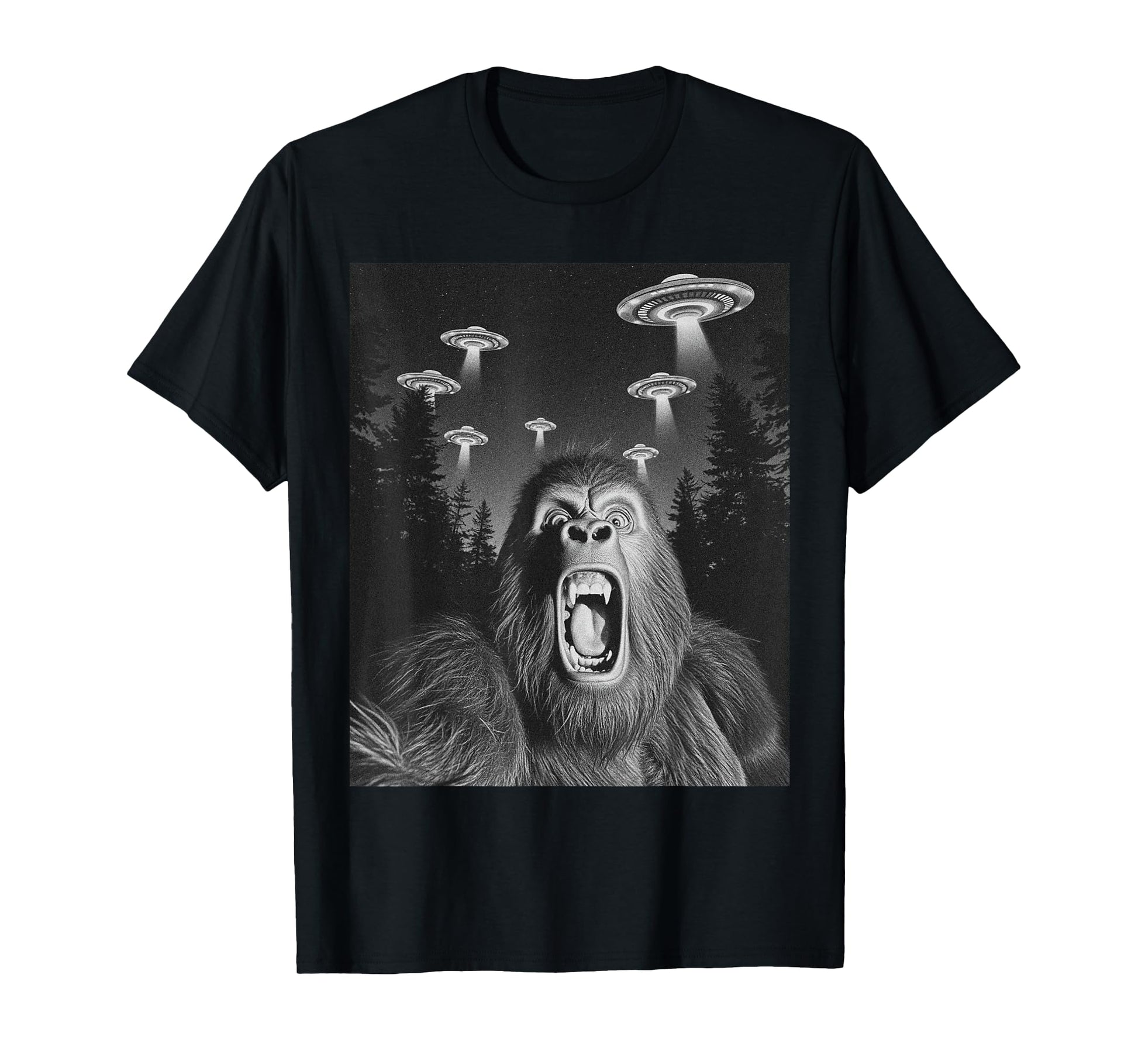 Surprised Bigfoot Selfie With UFO Sasquatch Meme Men Boy Kid T-Shirt