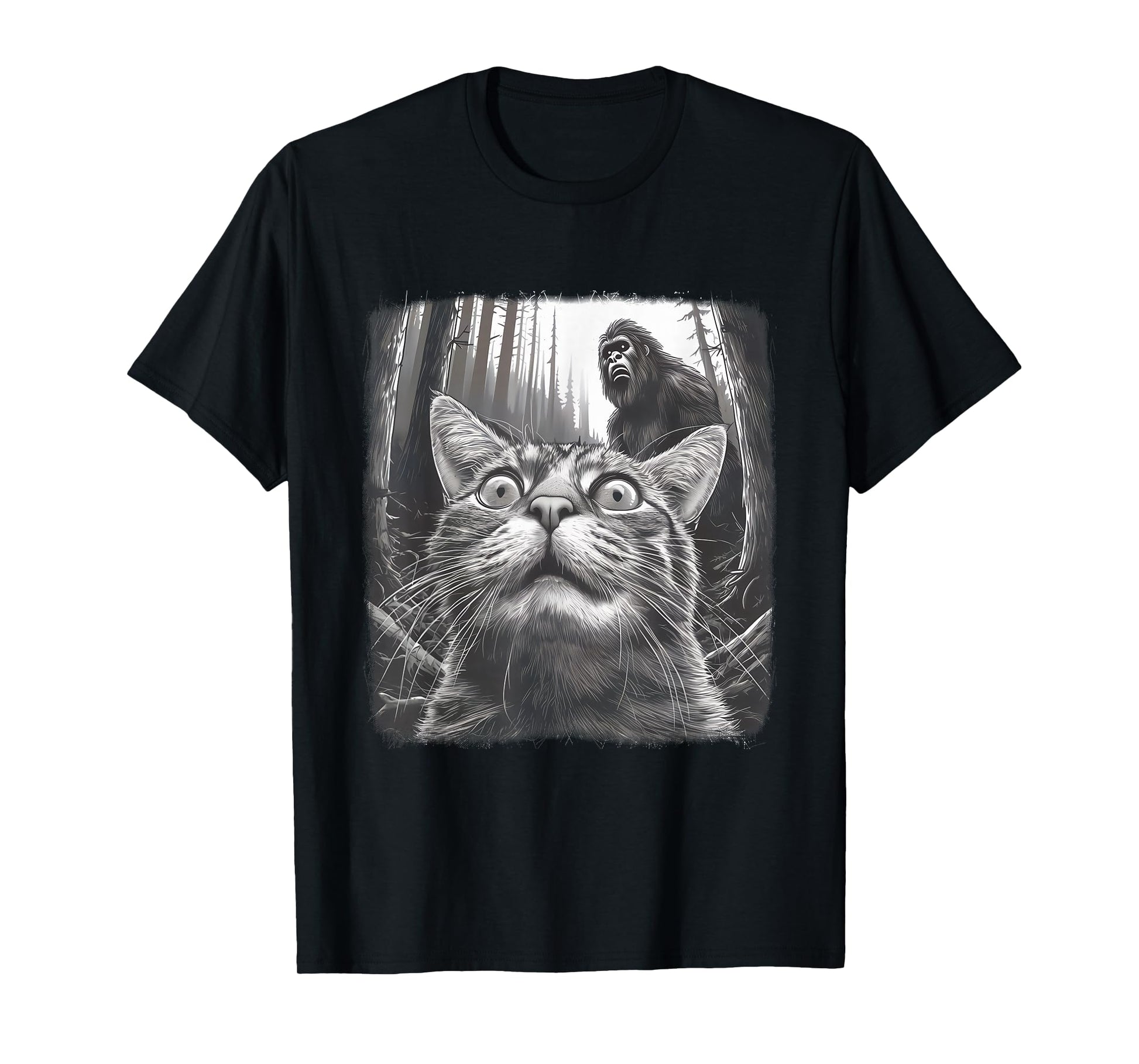 Surprised Scared Cat Selfie With Sasquatsch Bigfoot 0D4ERF T-Shirt
