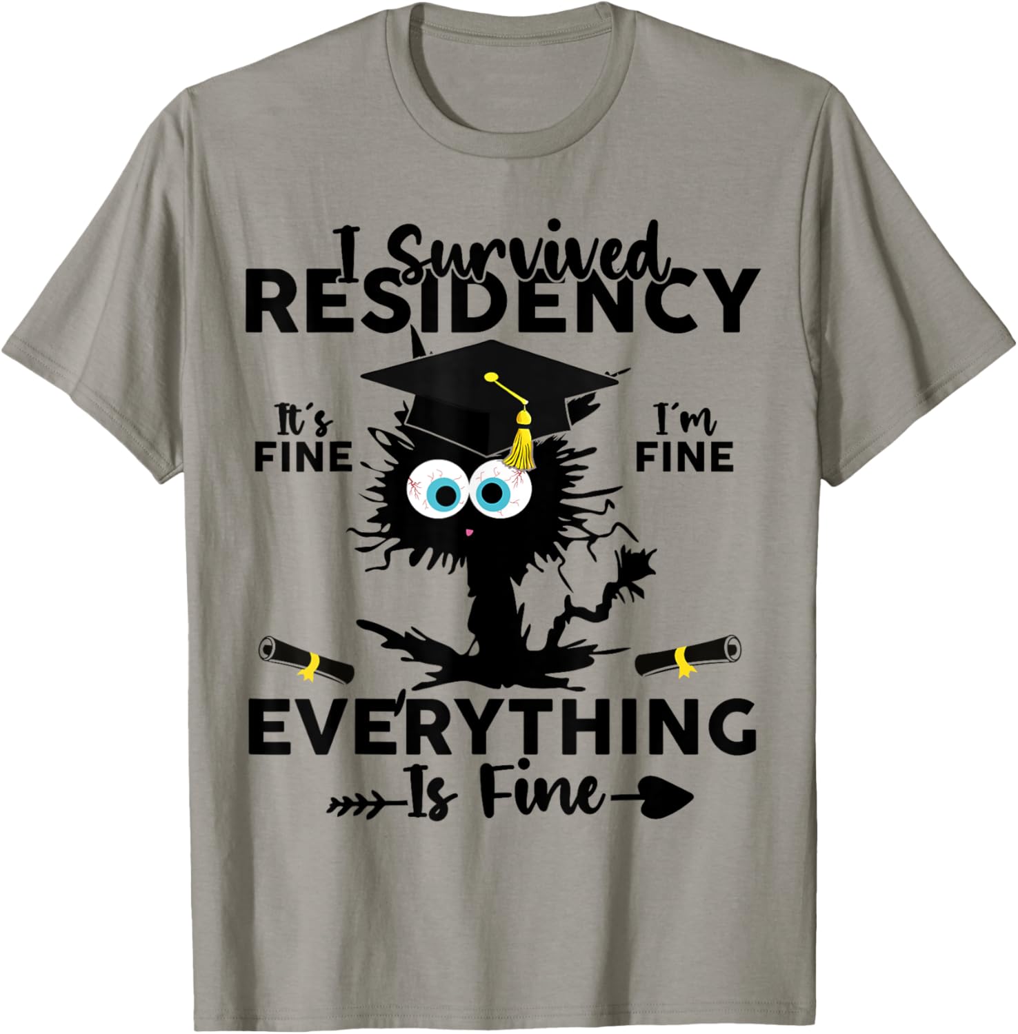 I Survived Residency Black Cat Residency Graduation Doctors T-Shirt