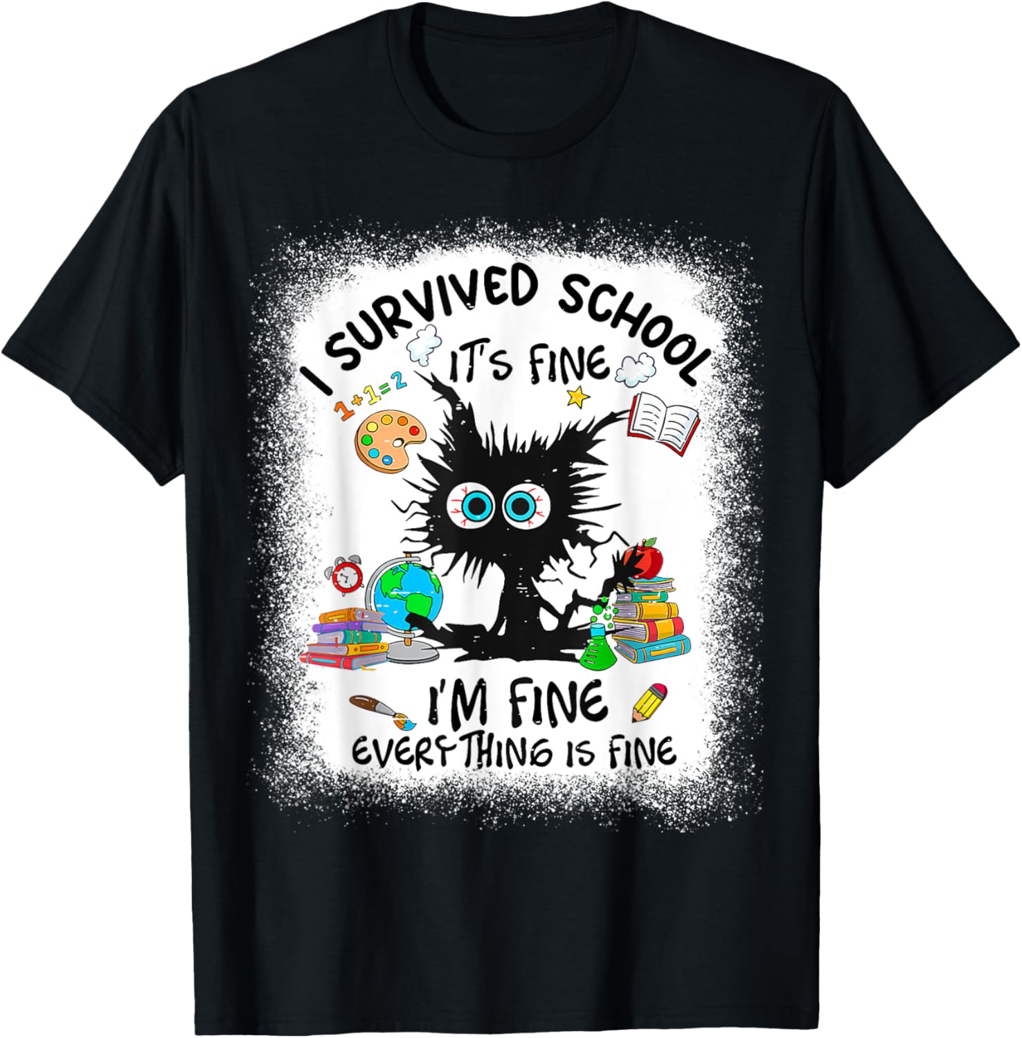 I Survived School It’s Fine Funny Cat Last Day Of School Kid T-Shirt