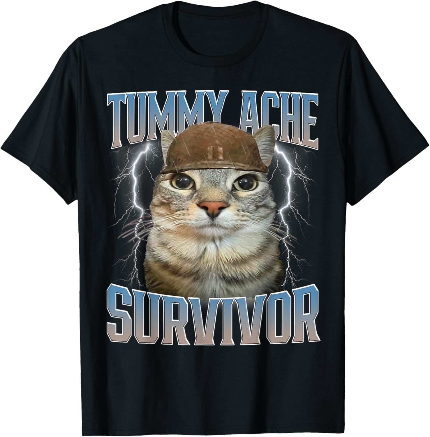 Tummy Ache Survivor Cat Meme Funny Saying Cats Animals T-Shirt