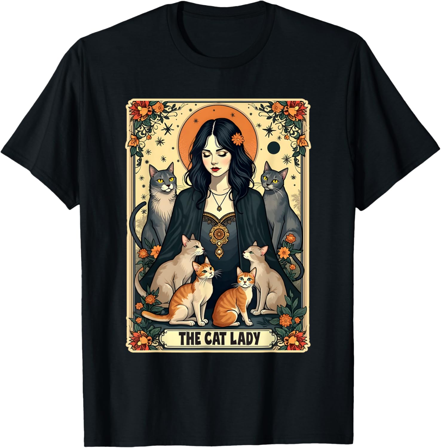 The Cat Lady Tarot Card Shirt Women Witchy Gothic Cat Mom T-Shirt