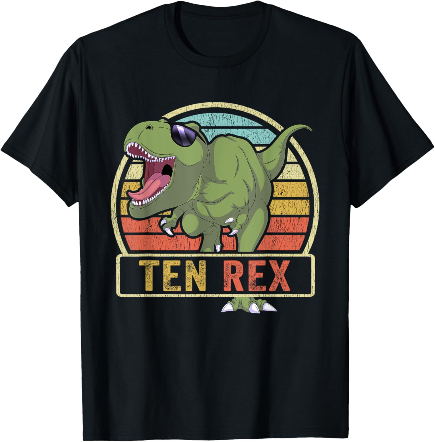 Ten Rex T Rex Birthday 10 Year Old Dinosaur 10th Dino T-Shirt