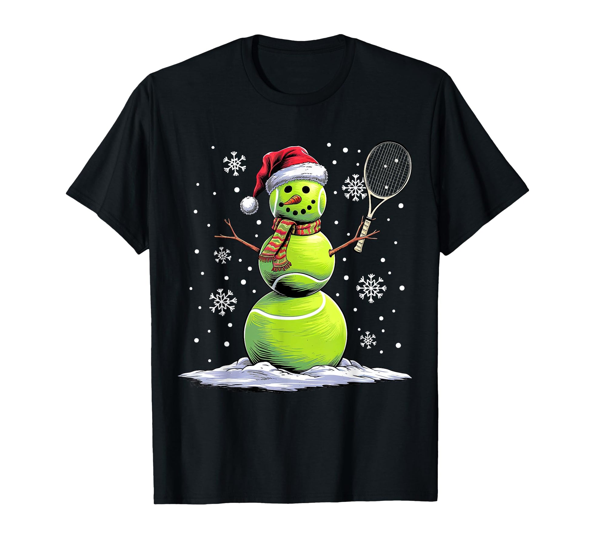 Tennis Snowman Tennis Player Santa Hat Christmas Funny T-Shirt