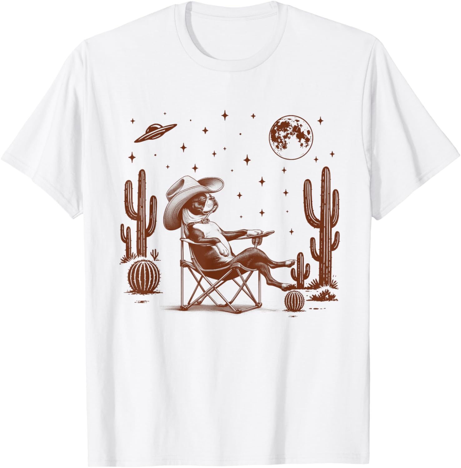 Boston Terrier Lover Dog Mom Howdy Western Life UFO Space T-Shirt