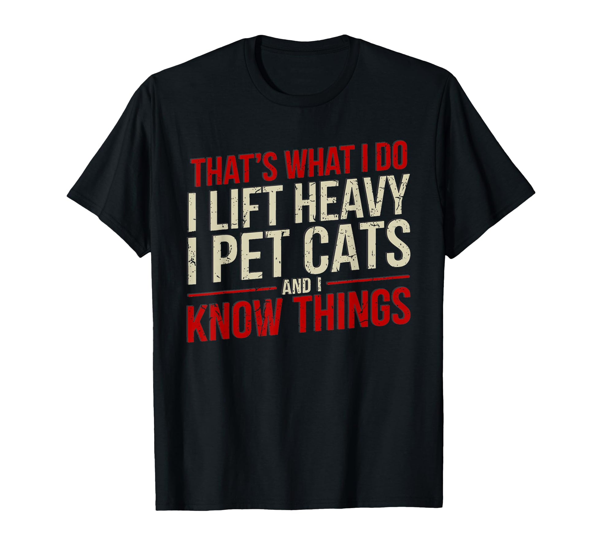 That's What I Do I Lift Heavy I Pet Cats Lover Unisex-Adults Funny Gym Workout Cat Themed T-Shirt Black Small