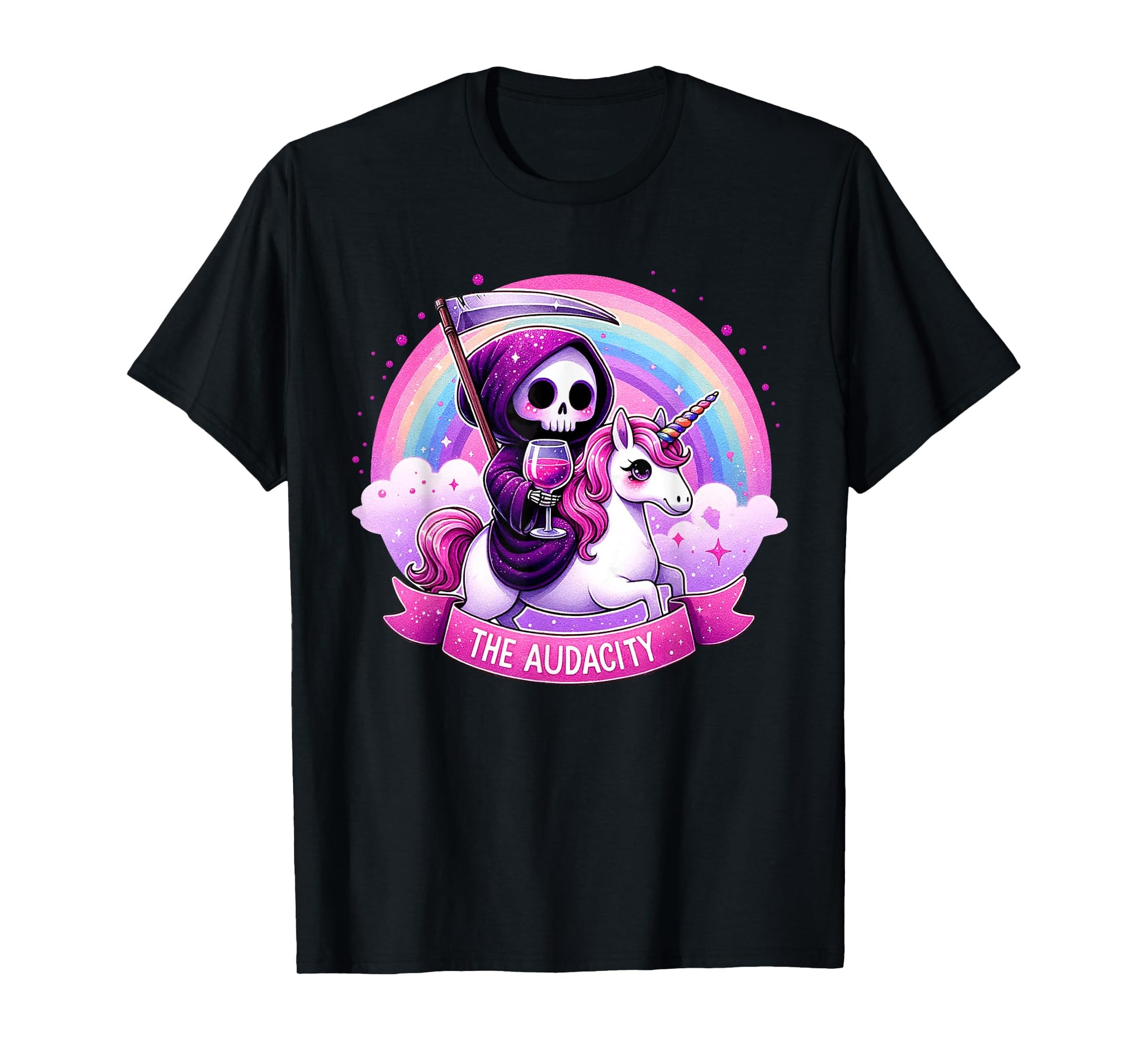 The Audacity Skeleton Riding Unicorn Rainbow Halloween Women T-Shirt