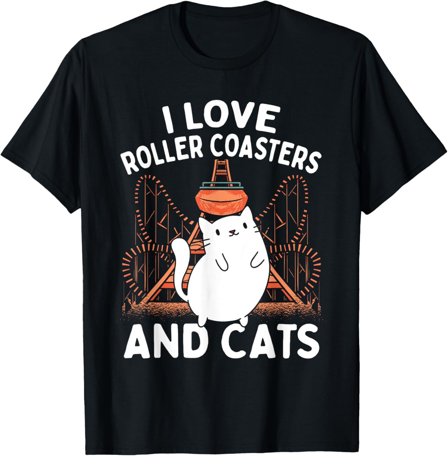 Theme Park Vacation I Love Roller Coasters And Cats T-Shirt