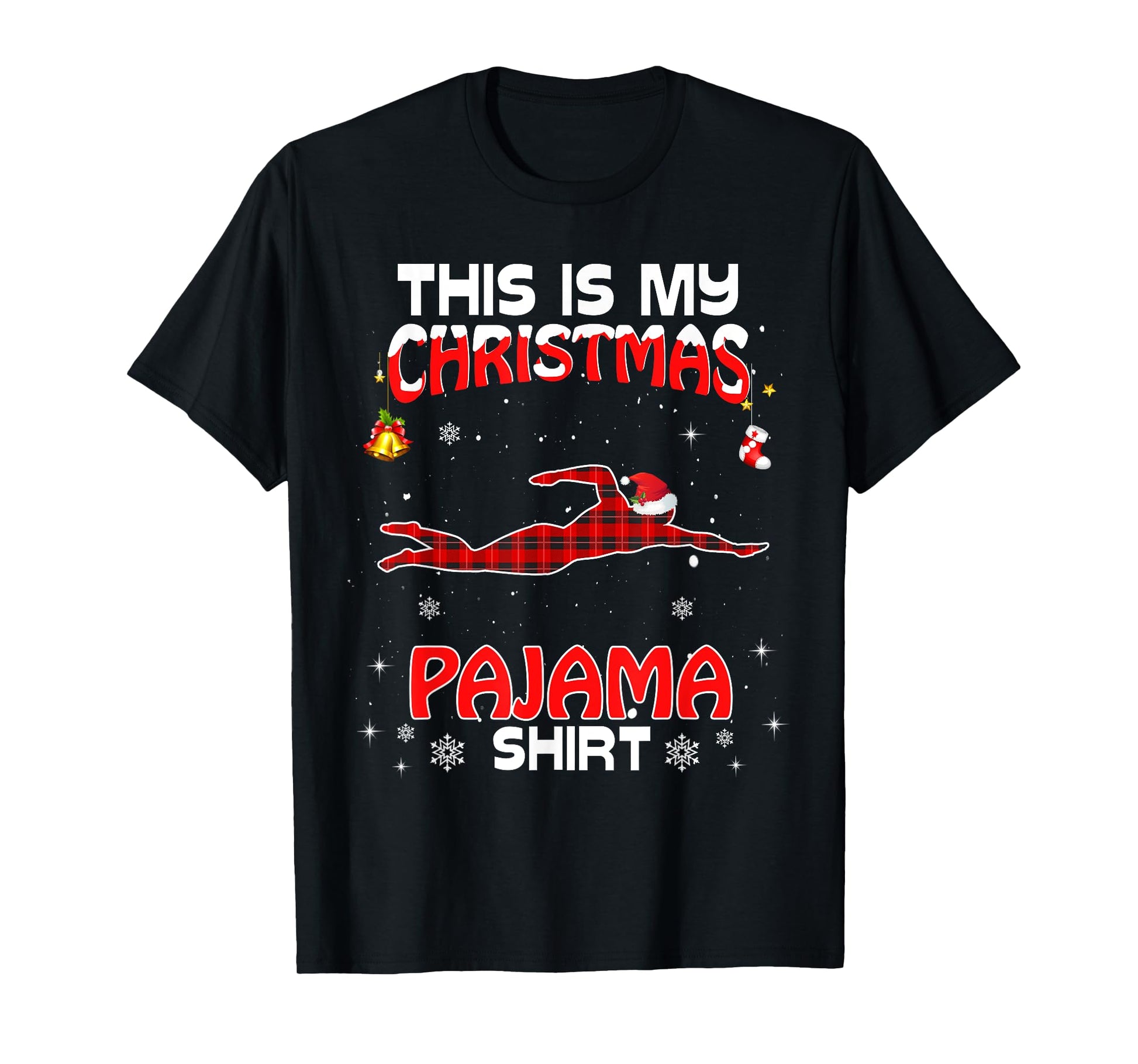 This Is My Christmas Pajama Shirt Red Plaid Swimming Xmas T-Shirt