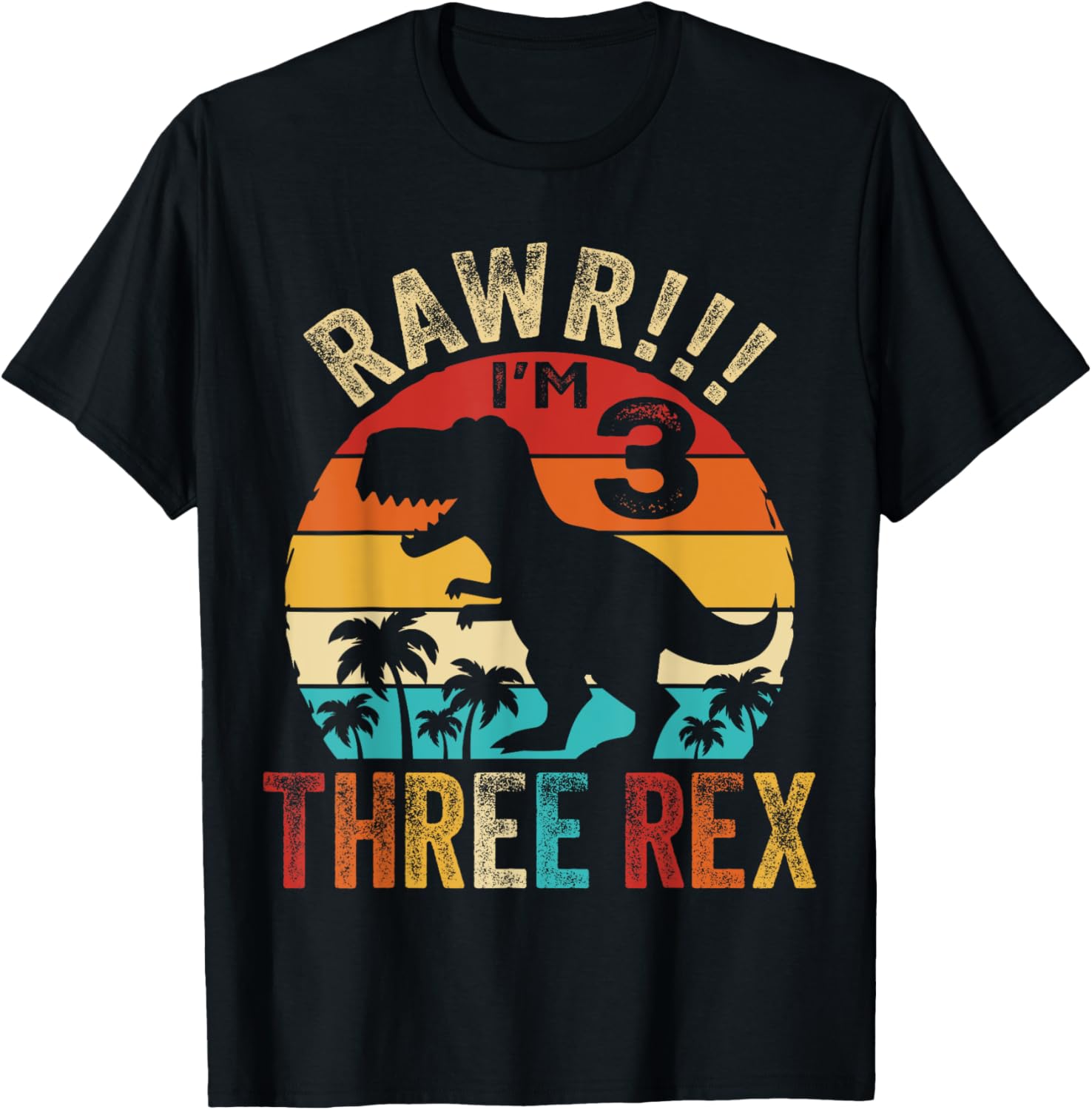 Three Rex Kids 3rd Years Old Birthday Boys Dinosaur Retro T-Shirt