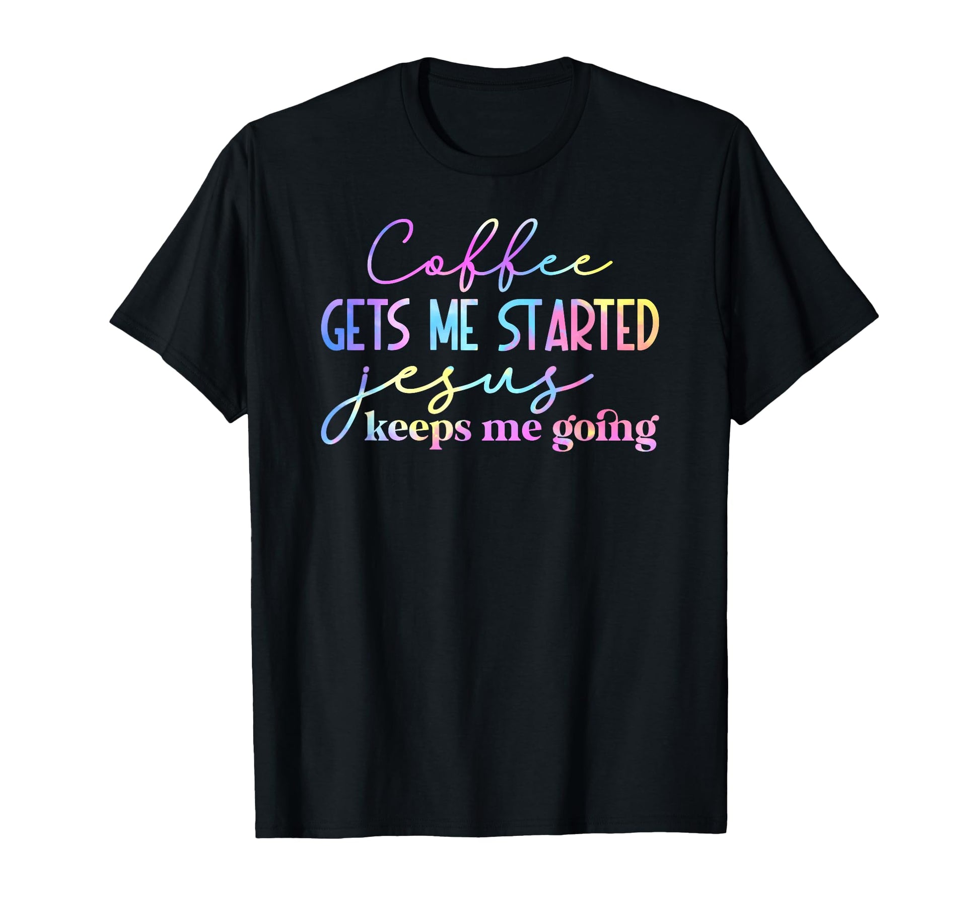 Tie Dye Coffee gets me started jesus keeps me going 01 T-Shirt