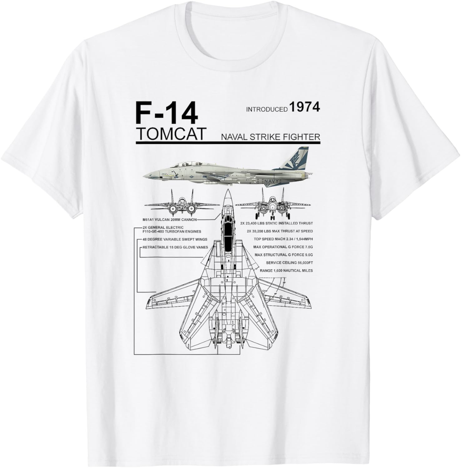 F-14 Tomcat Navy Fighter Jet Graphic Retro T-Shirt - Men's Blue Small