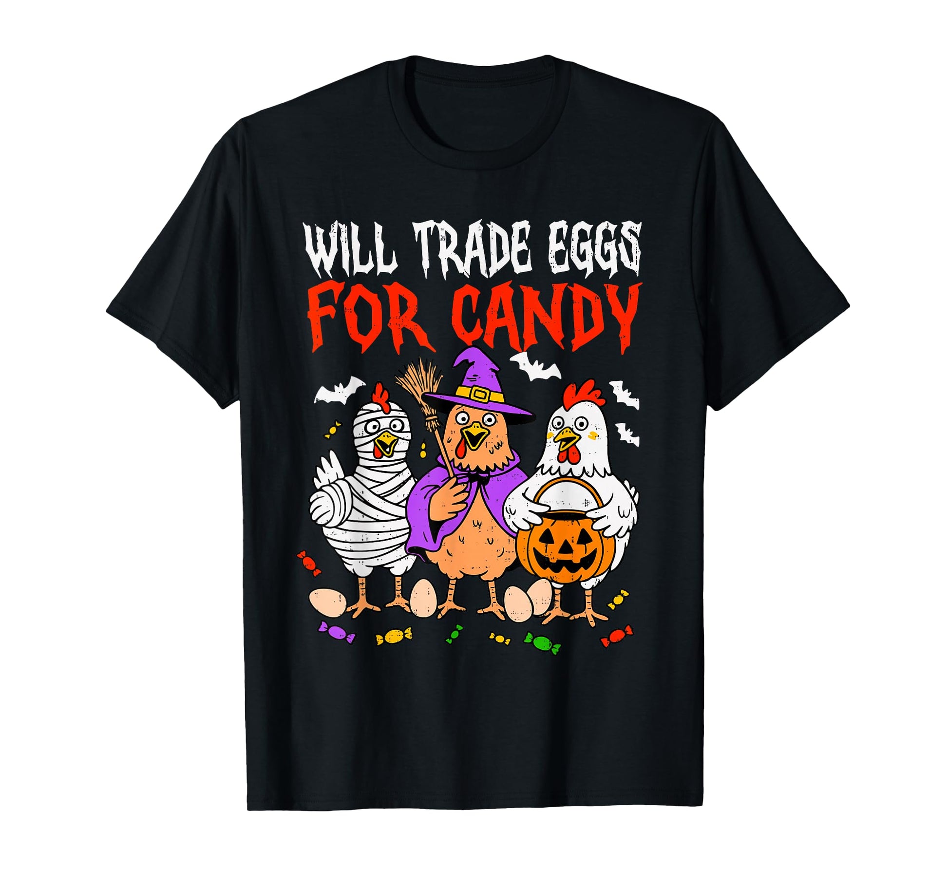 Trade Eggs for Candy Spooky Chicken Halloween Farm Farmer T-Shirt