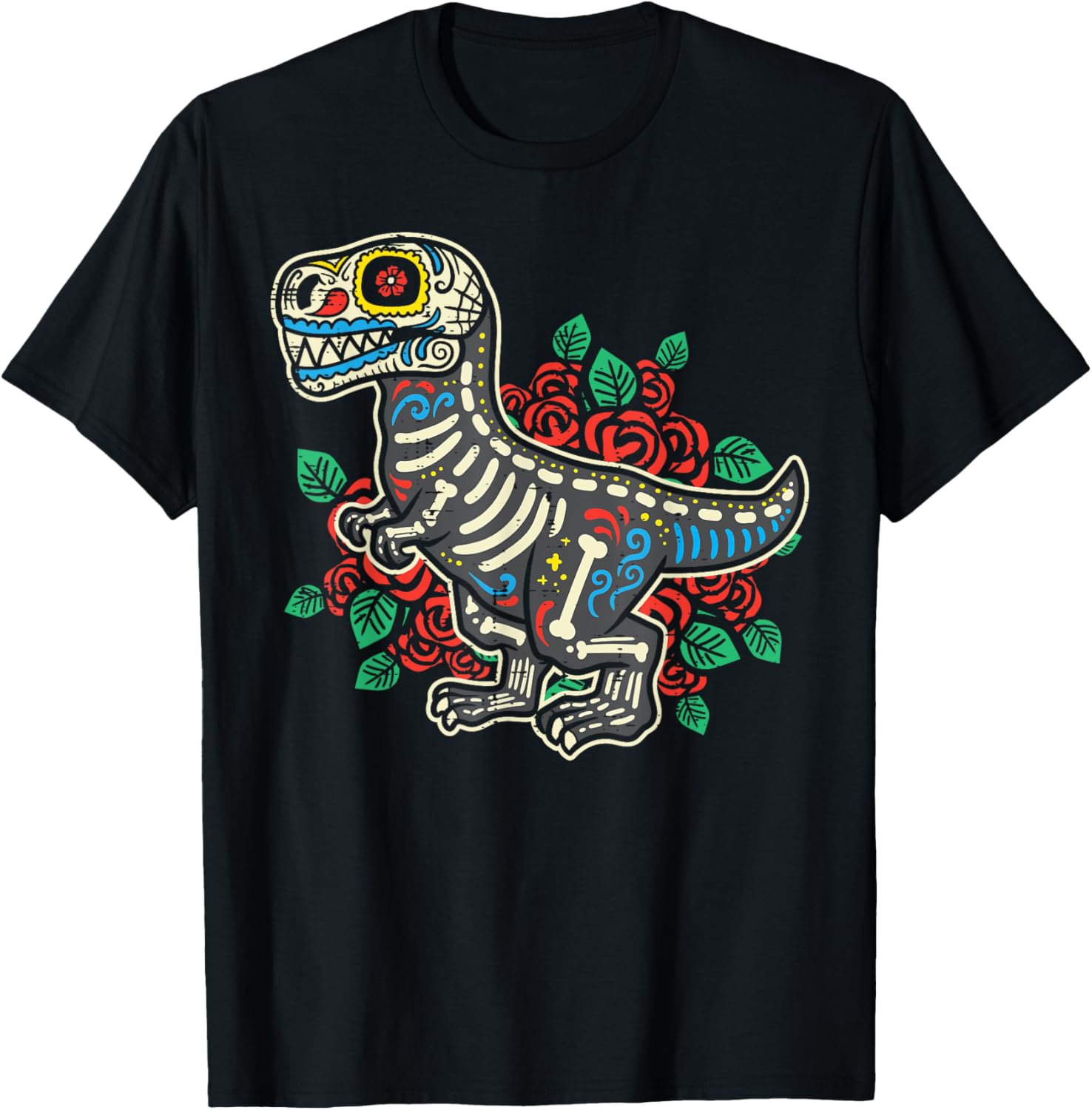 Trex Sugar Skull Dia De Muertos Mexican Halloween Dinosaur T-Shirt