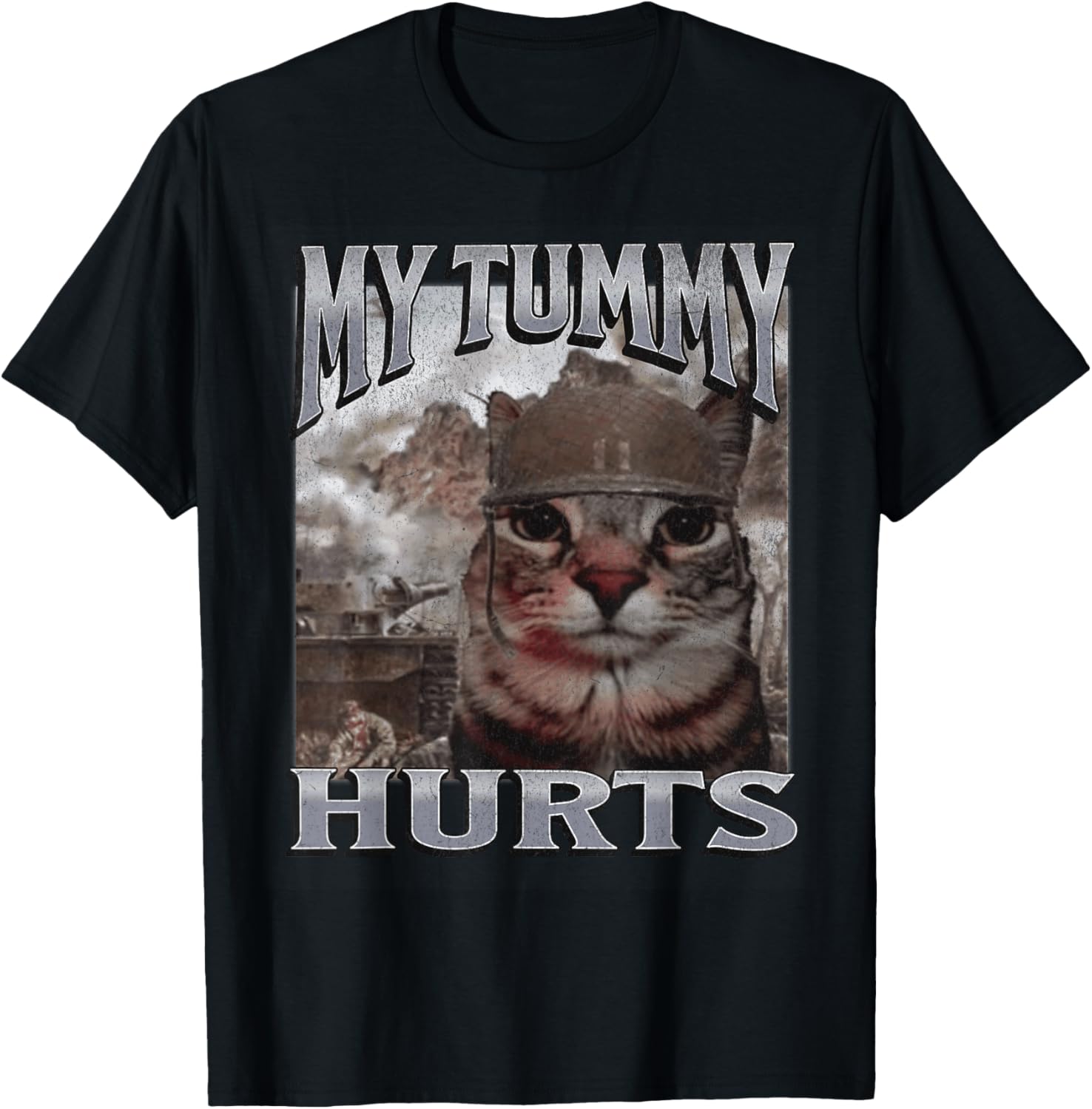 My Tummy Hurts Funny Cat Meme Bootleg Graphic T-Shirt