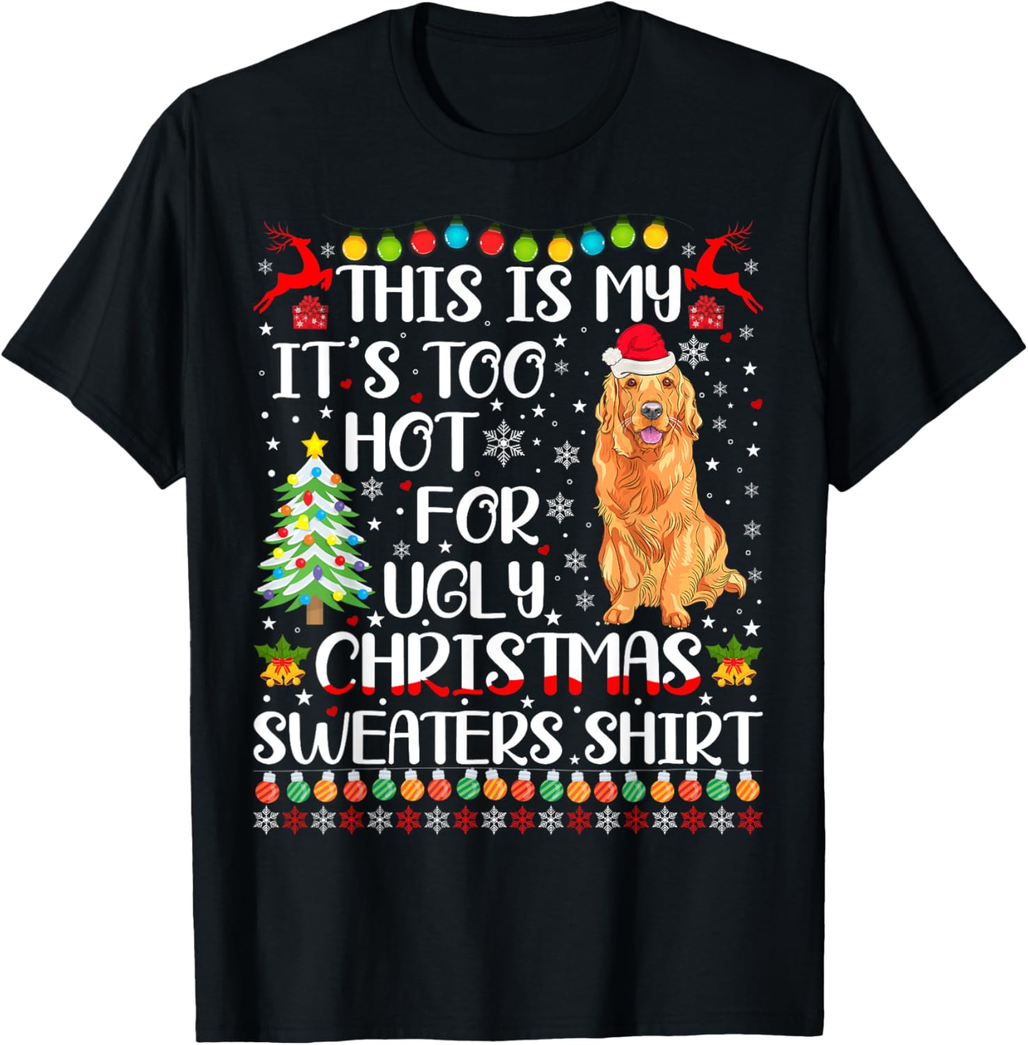 It's Too Hot For Ugly Christmas Sweater Golden Retriever Dog T-Shirt