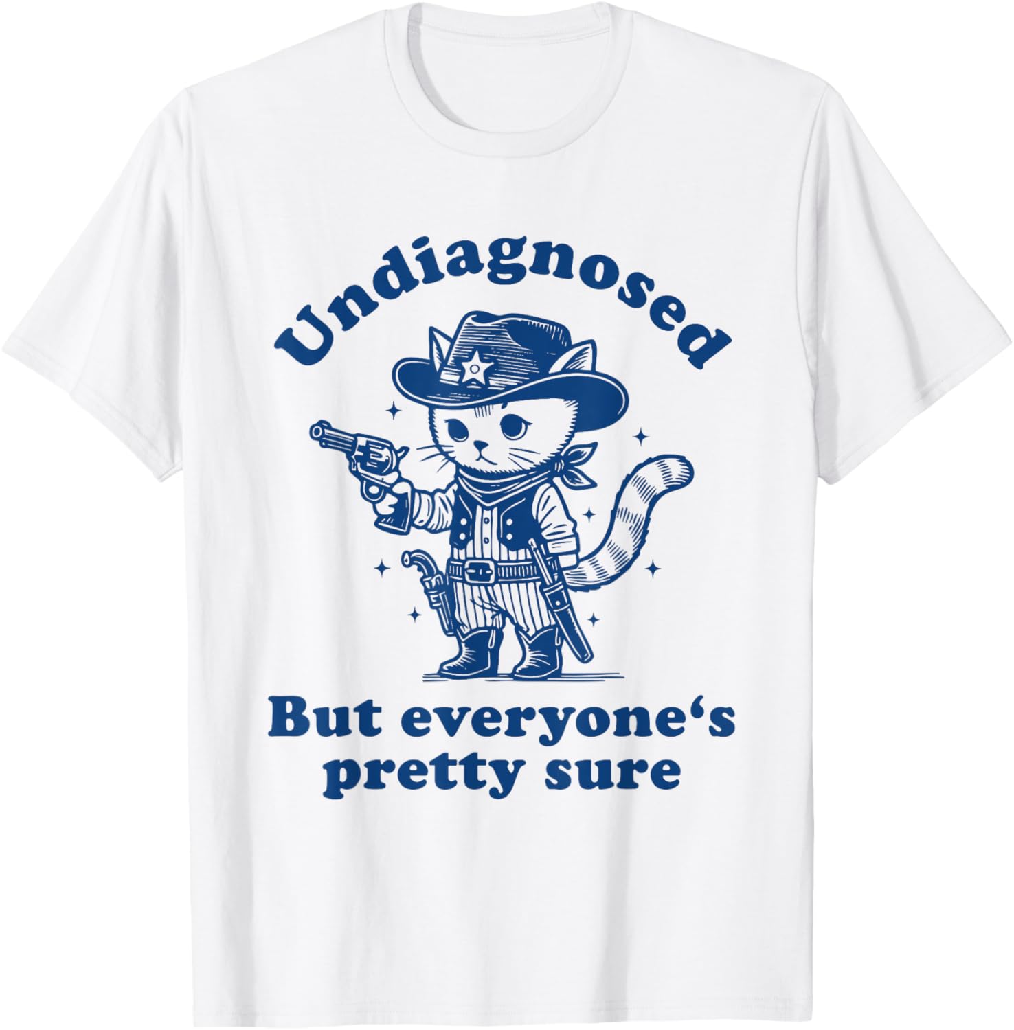 Undiagnosed But Everyone's Pretty Sure Funny Cowboy Cat T-Shirt