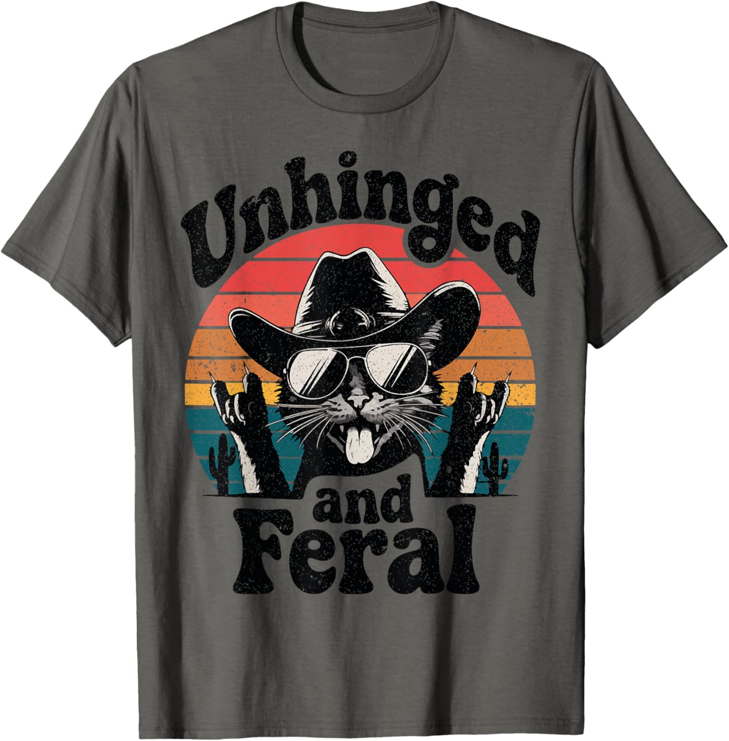 Unhinged And Feral Funny Retro Vintage Cat Cowboy Kitten T-Shirt