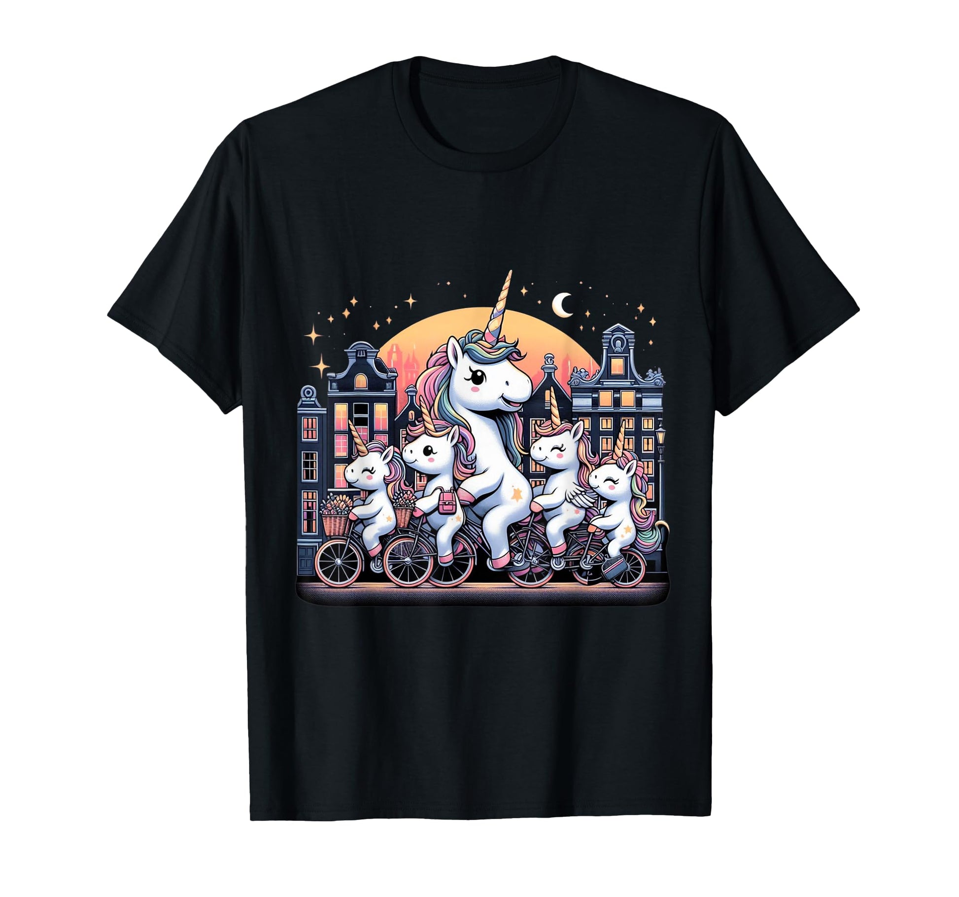 Unicorn Bicycle Amsterdam Netherlands Boys Girls Women Kids T-Shirt