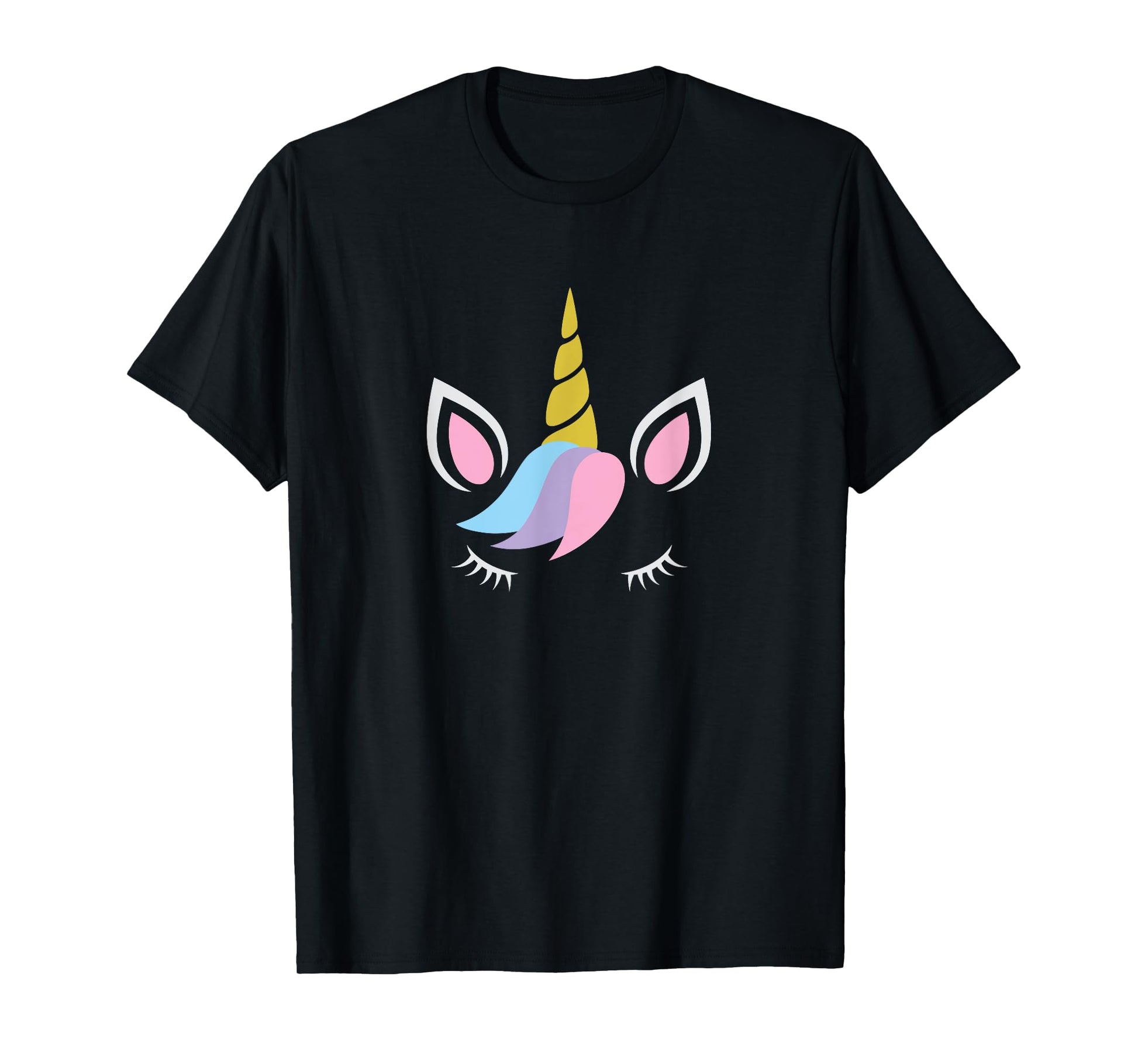 Unicorn Face And Eye Lashes With Colorful Pink Blue Hair T-Shirt