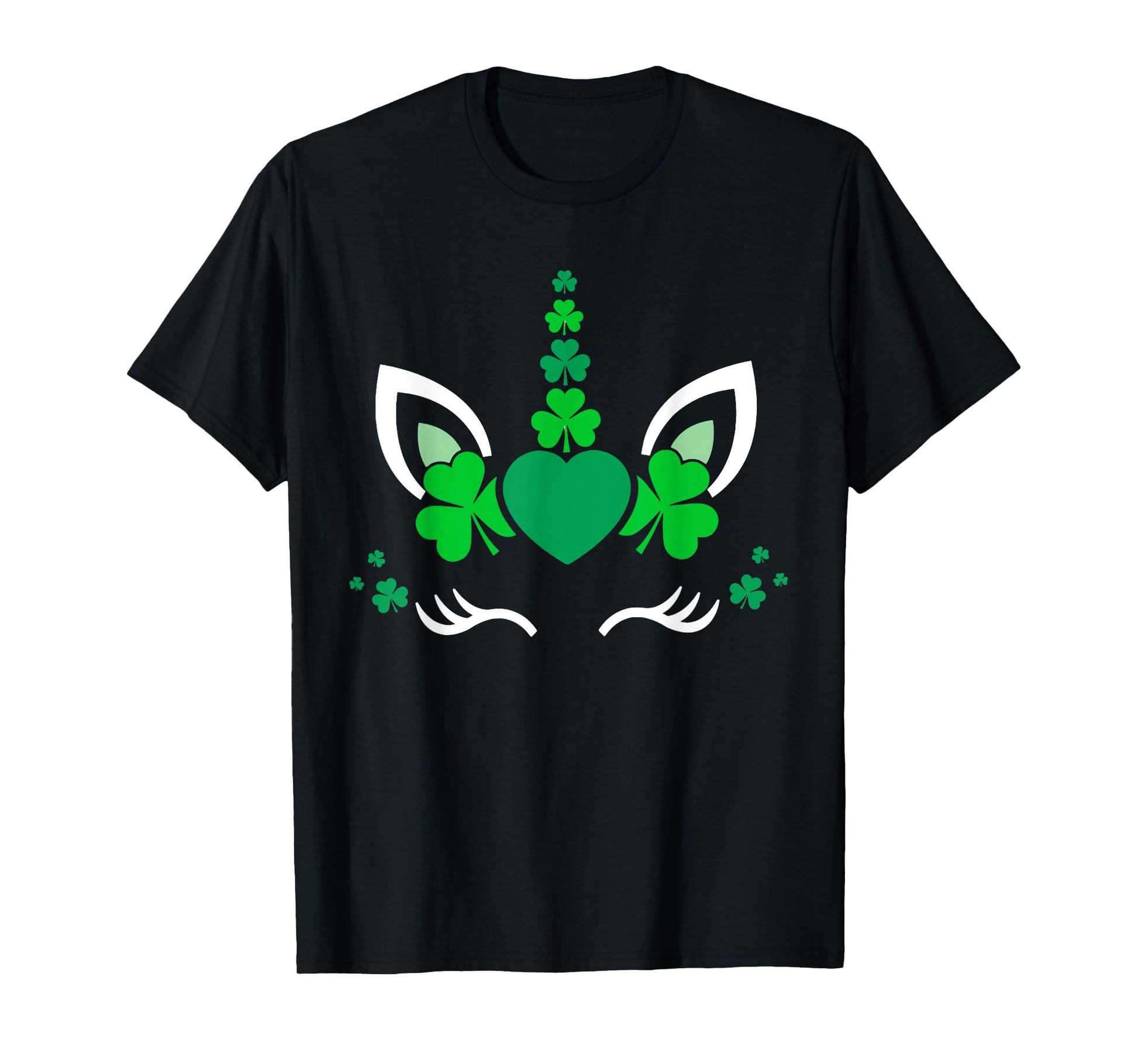Unicorn Face St Patricks Day Irish Shamrock Women Girls Kids T-Shirt