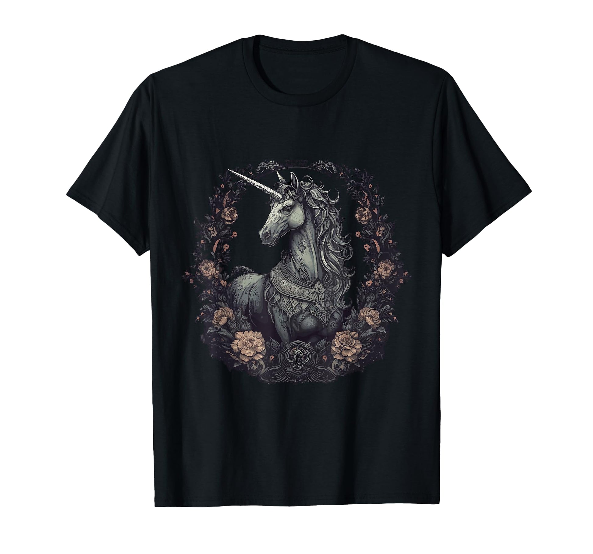 Unicorn Goth Unicorn Gothic Dark Flowers T-Shirt