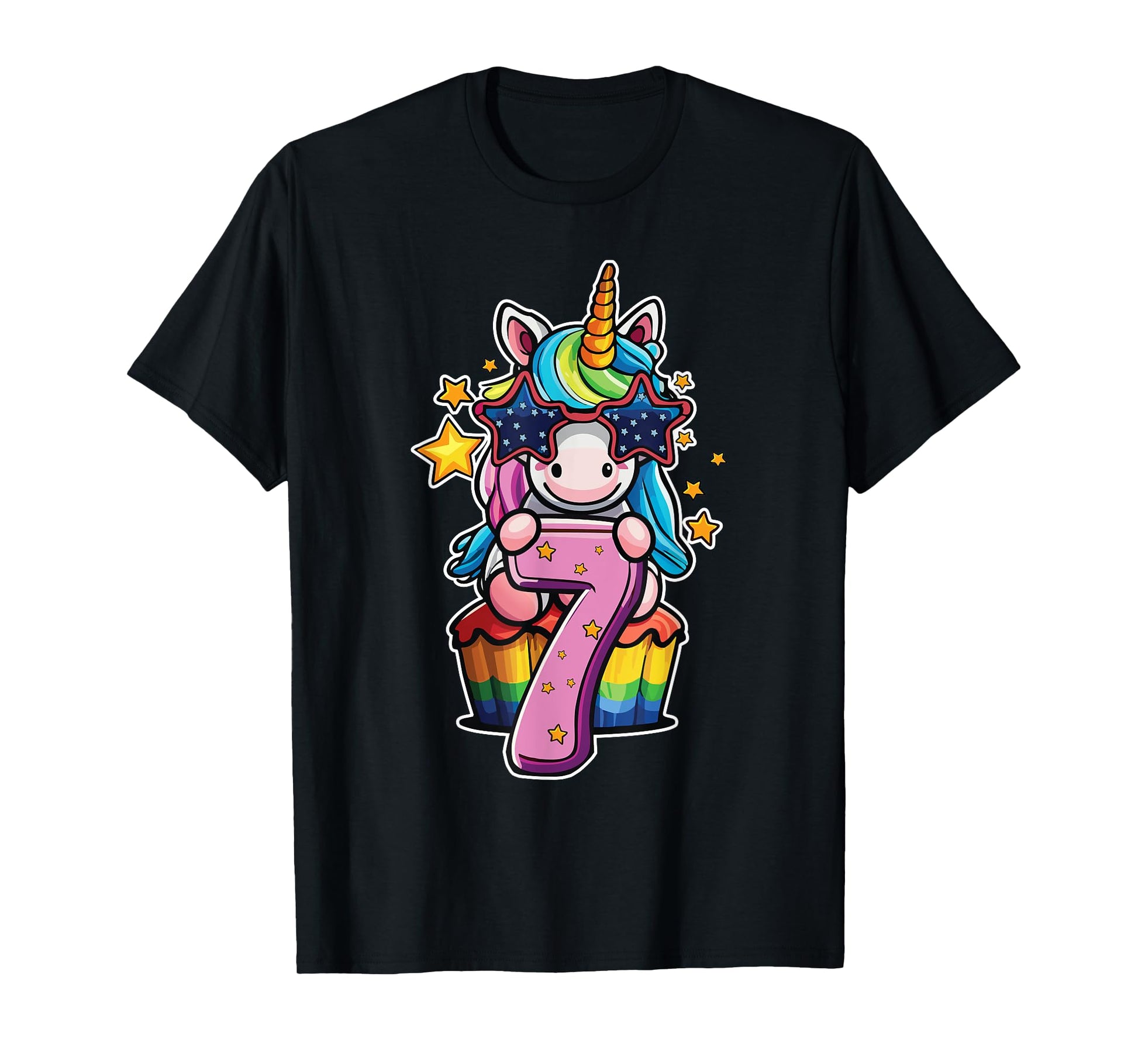 Unicorn Happy 7th Birthday Age 7 Rainbow Cupcake Cute Party T-Shirt