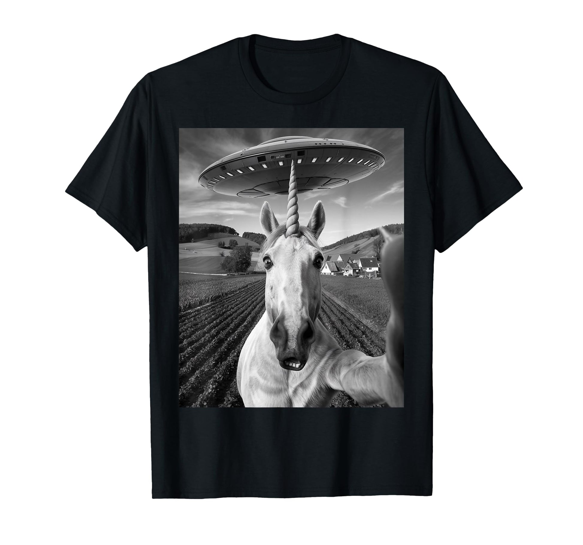 Unicorn Selfie With Alien UFO Funny Unicorn Gifts For Women T-Shirt
