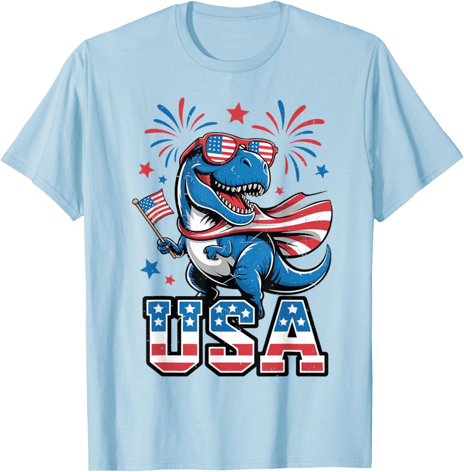 USA 4th July Toddler Boy Dinosaur Dino American Flag Patriot T-Shirt