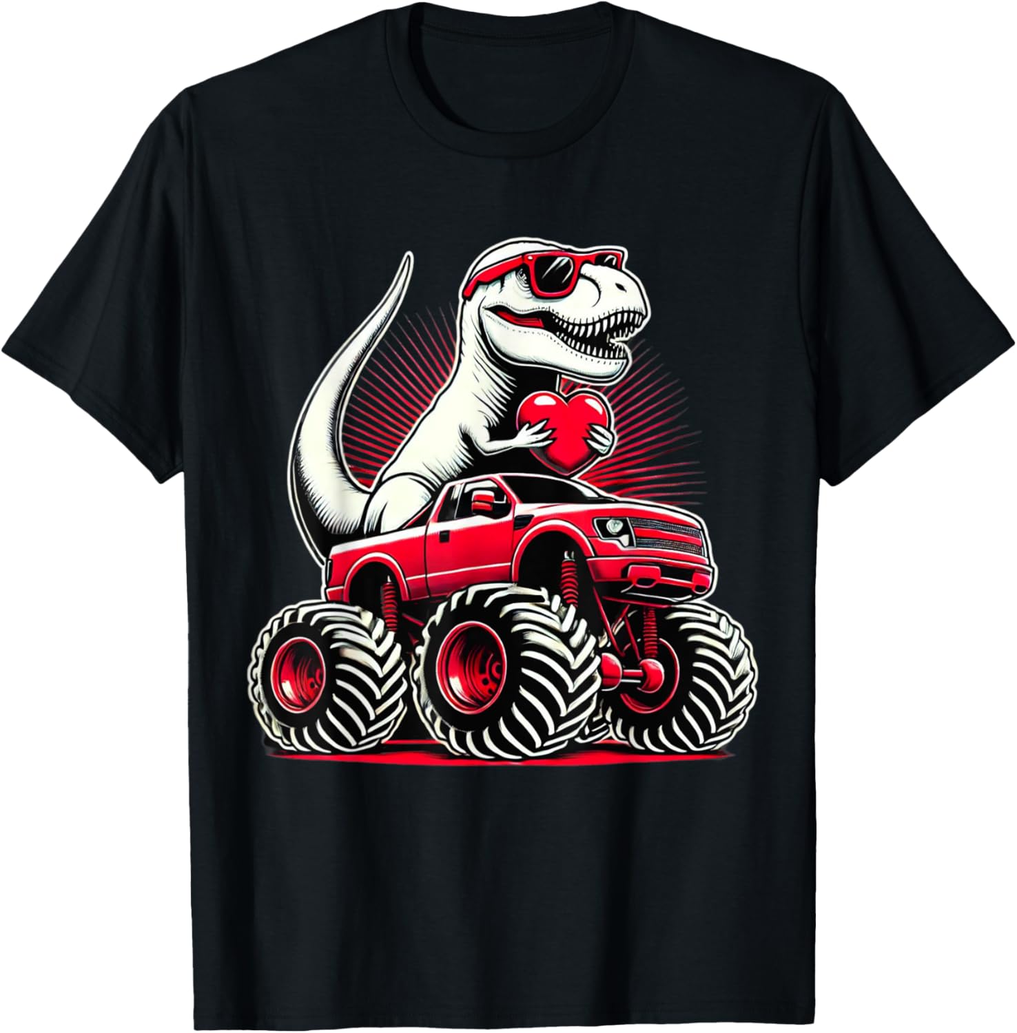 Valentines Day T Rex Riding Monster Truck Funny Boys T-Shirt