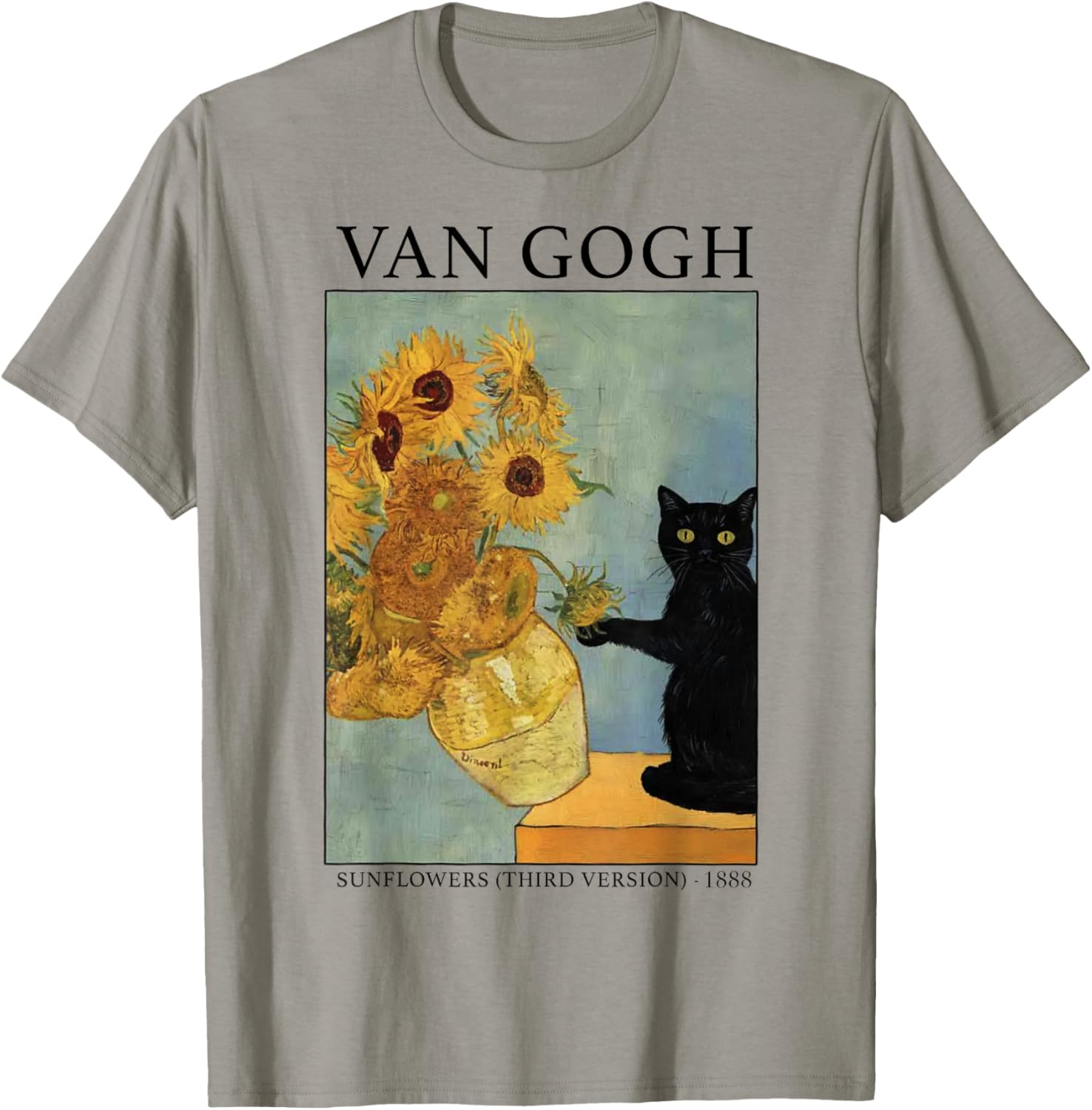 Van Gogh Black Cat With Sunflowers Funny Cat T-Shirt