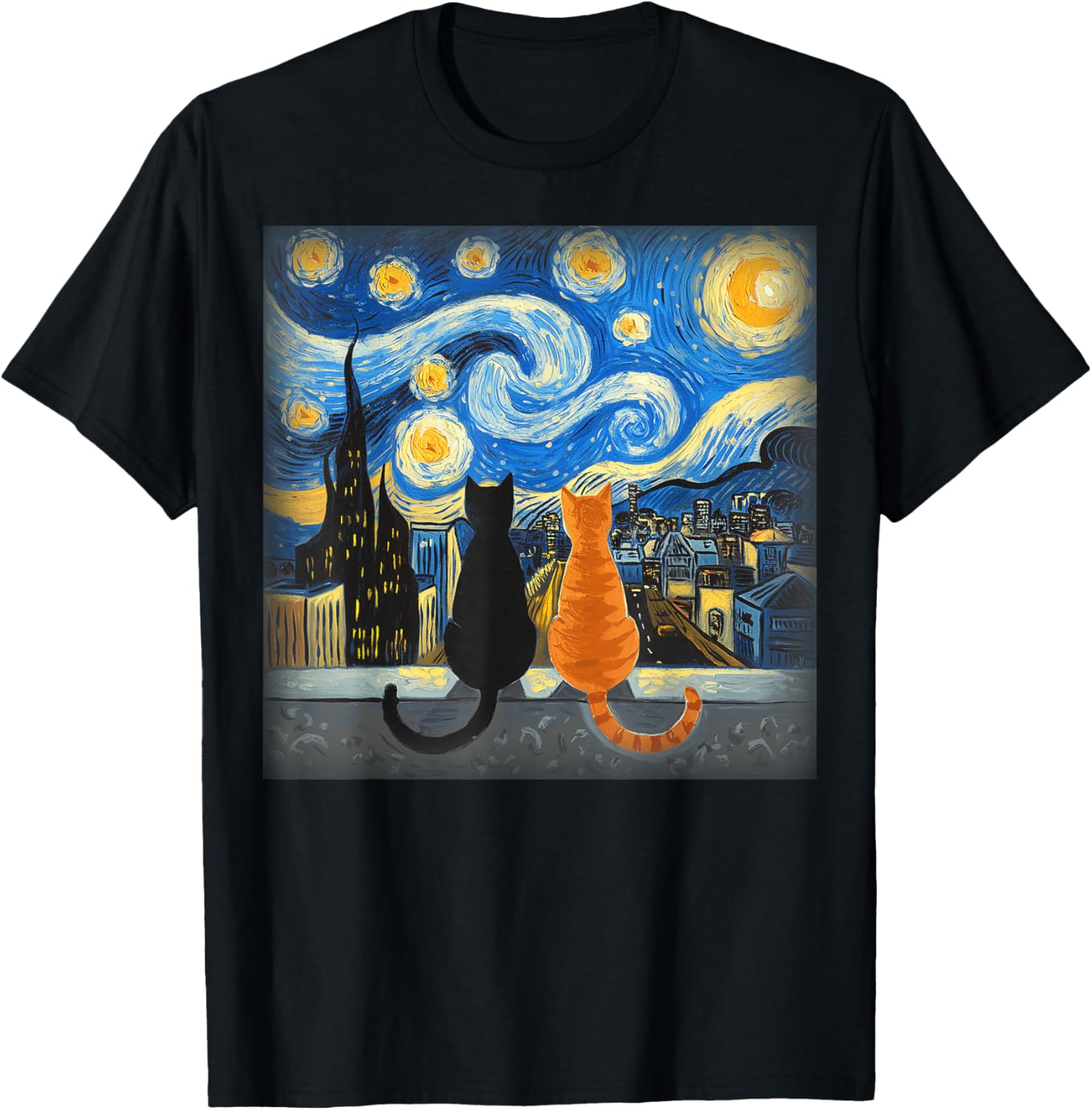 Vincent Van Gogh Starry Night Cat T-Shirt Gift for Cat Mom & Dad