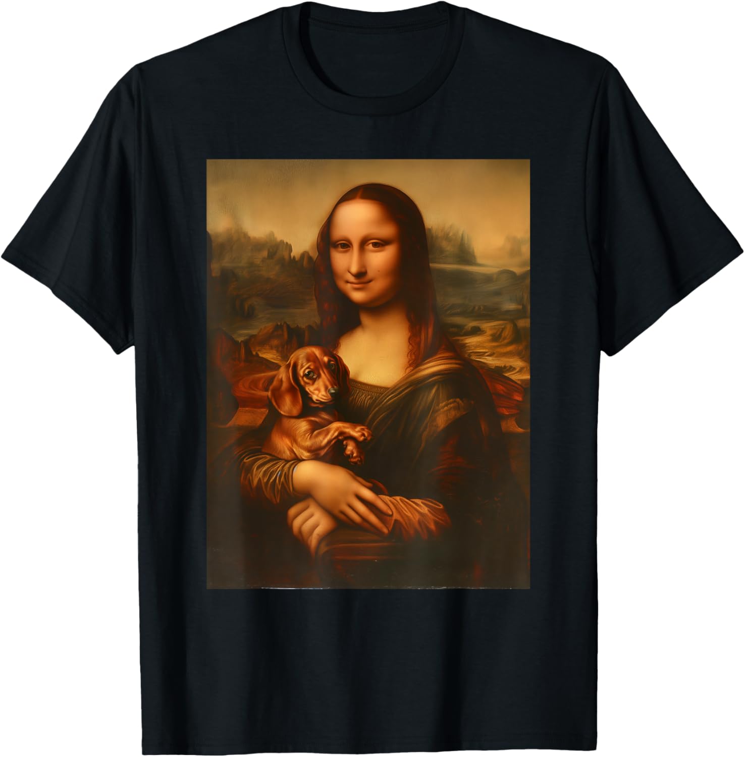 Da Vinci Mona Lisa holding Dachshund Funny Cool Art Teacher T-Shirt