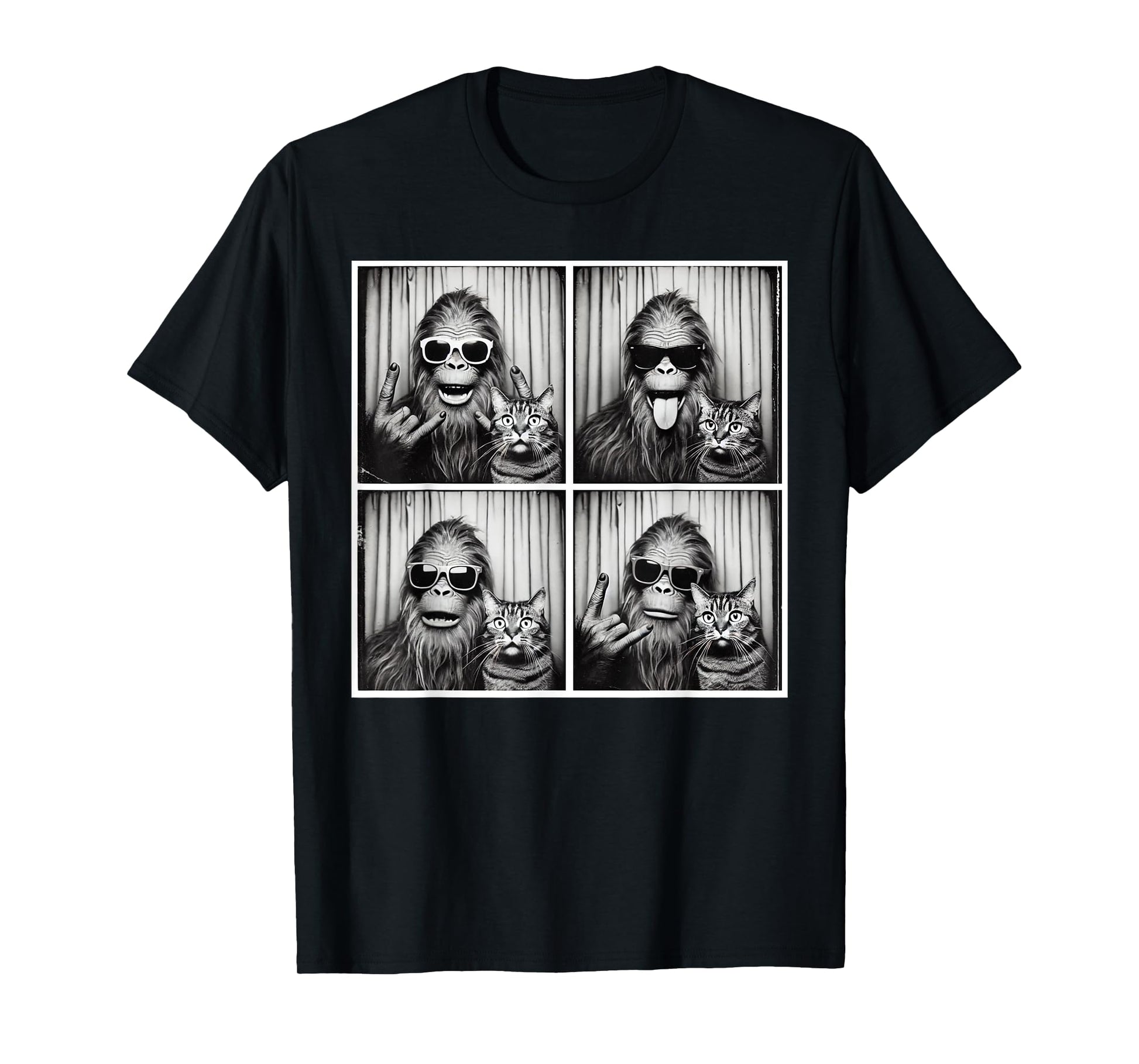Vintage Bigfoot And Cats Funny Rock On Bigfoot Photobooth T-Shirt