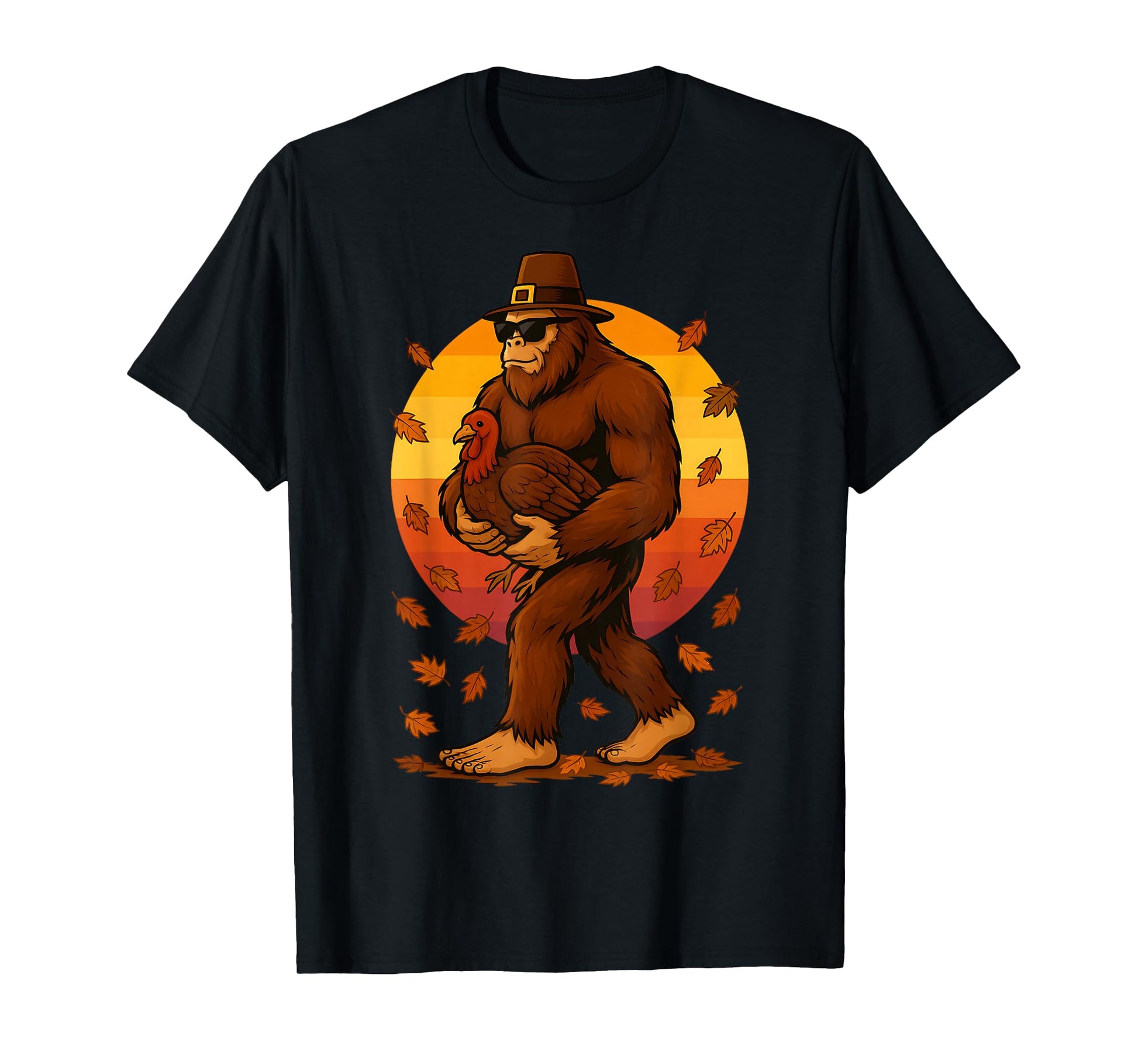 Vintage Bigfoot Pilgrim Turkey Thanksgiving Day Boys Men T-Shirt