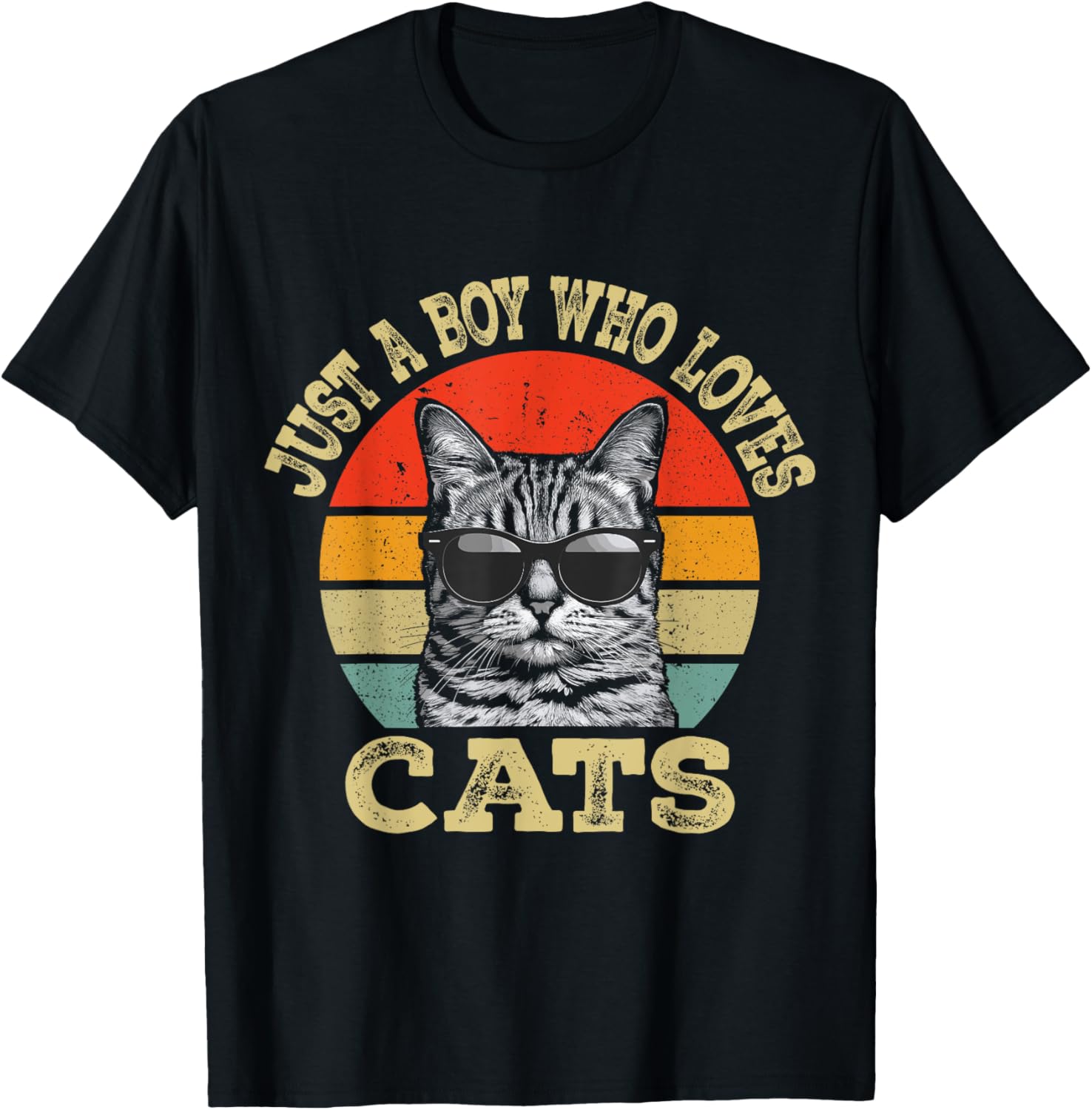 Vintage Just A Boy Who Loves Cats Boy Kid Cat Lover For Boys T-Shirt