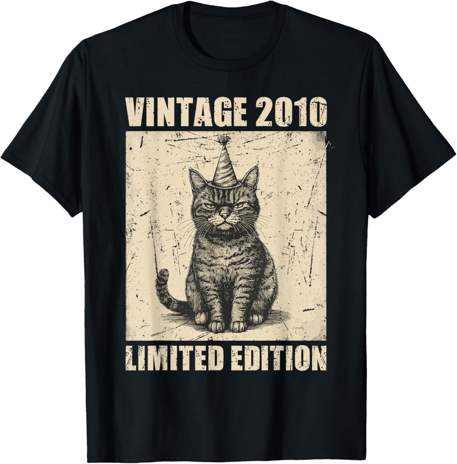 Vintage Cat 2010 Funny 15 Years Old Birthday Limited Edition T-Shirt