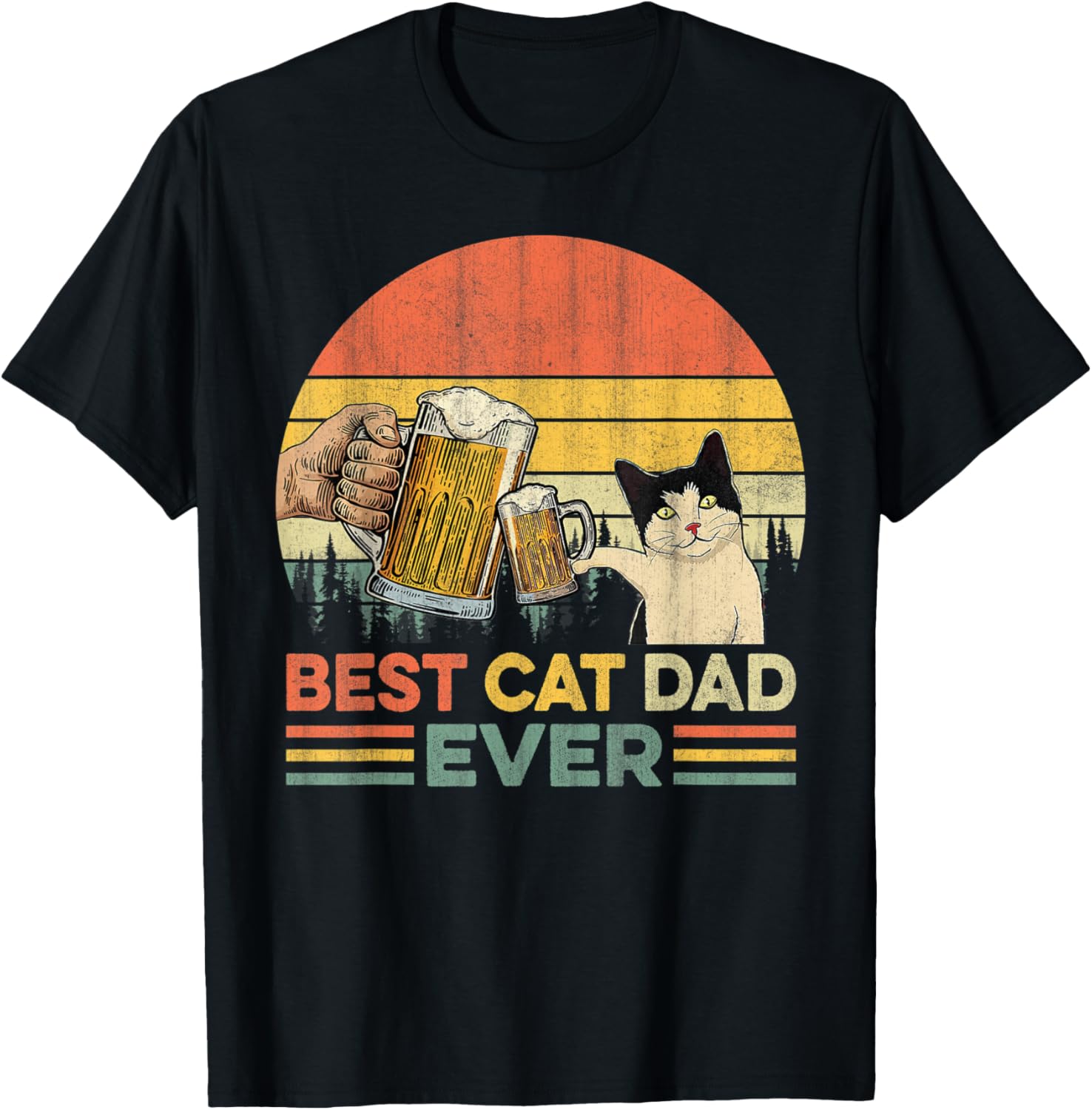 Vintage Best Cat Dad Ever Funny Beer Drinking Men T-Shirt